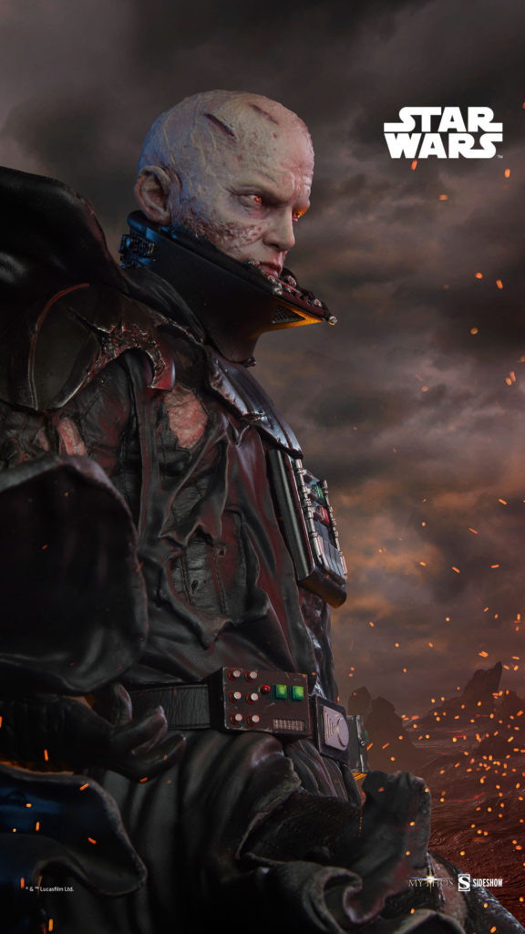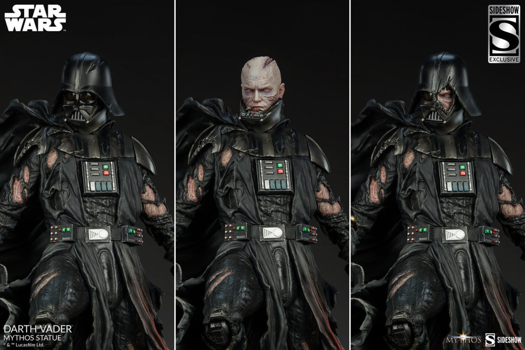 Capturing the crossroads in his character evolution, Sideshow’s Star Wars Mythos statue includes two portraits — one featuring his iconic helmet with slight battle damage and one un-helmeted to reveal the scarred visage of Anakin Skywalker™ completely consumed by his own darkness.