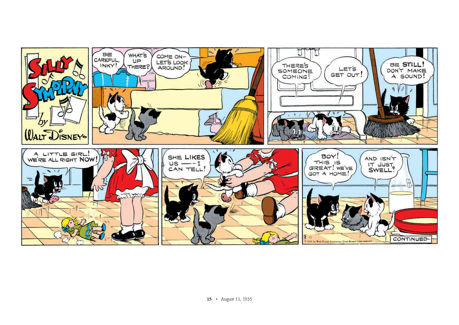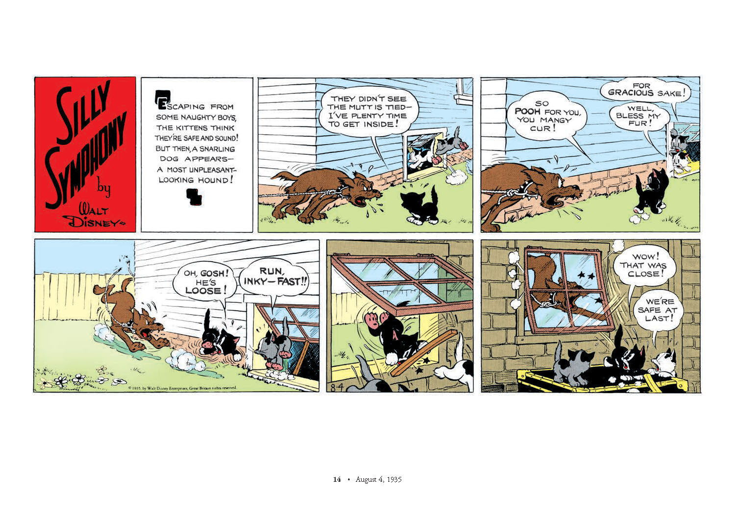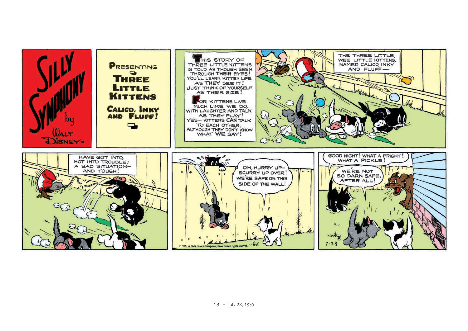 This second of four volumes presents the spectacular Sunday pages from 1935 to 1939, featuring the first comic strip adaptation of a feature-length film—Snow White… the original Donald Duck series, plus the Three Little Pigs (and the Big Bad Wolf, of course), Elmer the Elephant, Pluto, Goofy, and the Three Little Kittens. The artwork for these rare strips has come straight from the Disney vaults, each page meticulously colored using as a guide the original file copies that belonged to Walt Disney himself!