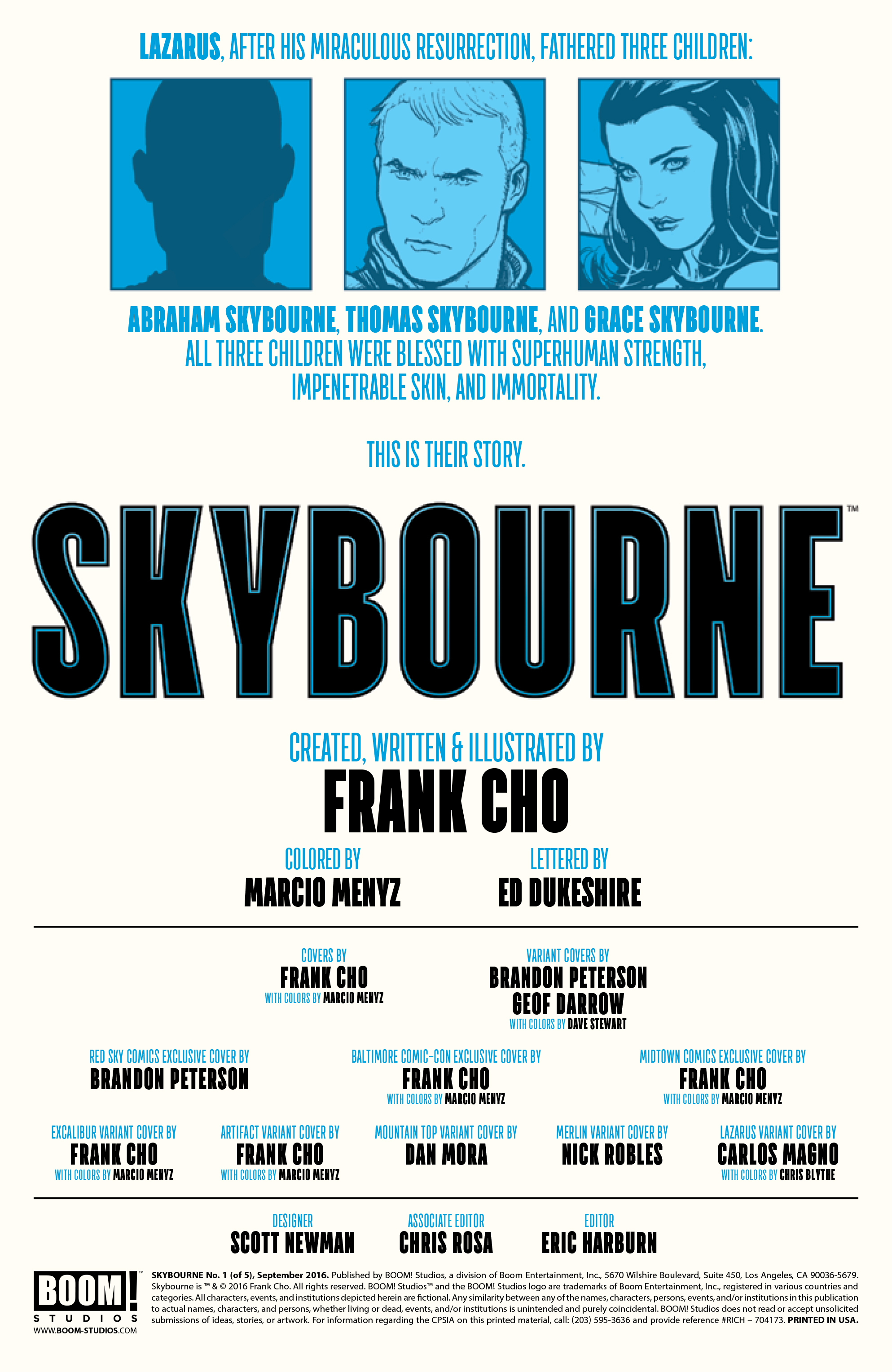 - Full of fast-paced action, Skybourne is Indiana Jones meets James Bond with fantasy elements thrown in. Cho describes it as “one of the most cinematic stories I’ve envisioned.”