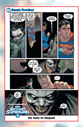 Up in the sky, in the dark of the night, trust no one—for the Secret Six walk among us! Spinning out of the devastating events of DC’s THE BATMAN WHO LAUGHS, Superman and Batman join together once more in an all-new monthly comic book—and they’re facing a terrifying new threat that could strike from anywhere. Writer Joshua Williamson (THE FLASH, JUSTICE LEAGUE/SUICIDE SQUAD) and artist David Marquez (Civil War II, Avengers) are teaming-up in BATMAN/SUPERMAN, debuting on August 14, 2019.