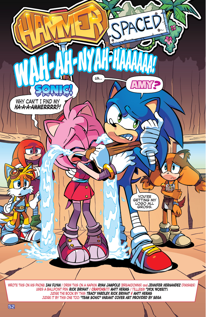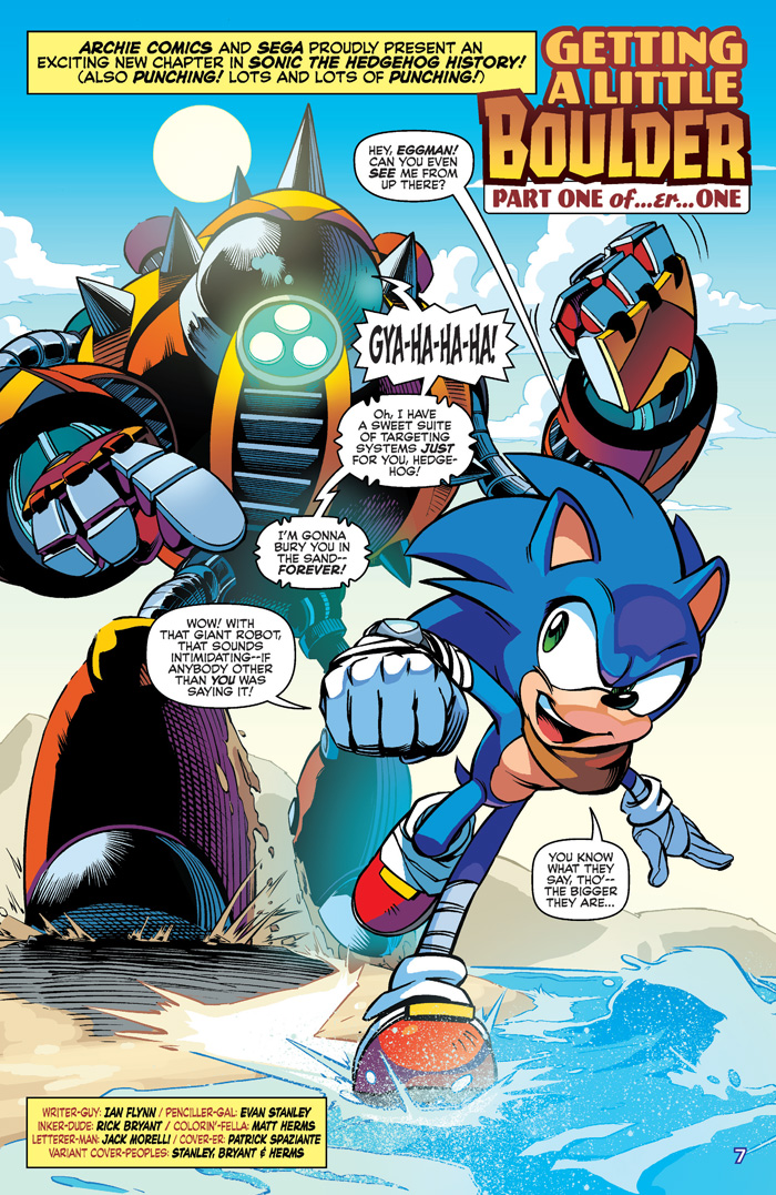 Here comes the BOOM! Sonic the Hedgehog and his friends are back and ready to do battle with the evil DR. EGGMAN! This ground-breaking new branch of the Sonic the Hedgehog franchise puts a different “spin” on all your favorite heroes and villains—plus brand new faces and hilarious stories chock-full of action. Written by bestselling Sonic comic scribe Ian Flynn, and based on the hit TV series! Sonic and his friends Tails, Amy, Knuckles and new member Sticks, must come together as a team to explore a new world full of comedy and adventure. SONIC BOOM Vol. 1 collects Sonic Boom #1-4.