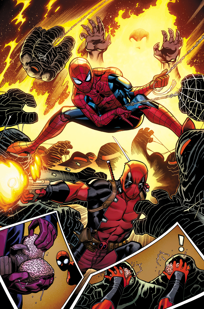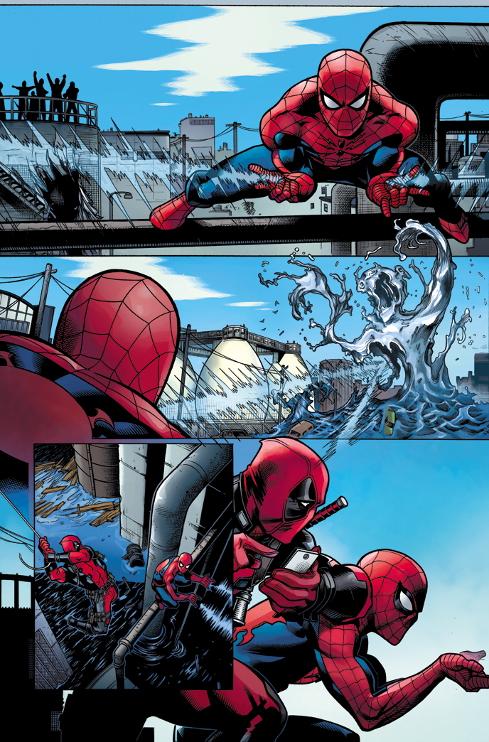 Two great tastes that taste great together! Now starring together in their own ongoing series! Today, Marvel is pleased to present your new look inside SPIDER-MAN/DEADPOOL #1 – wallcrawling, wisecracking and bad guy stabbing into your hearts this January! Blockbuster creators and legendary Deadpool creative team of Joe Kelly and Ed McGuinness reunite once more to chronicle the ongoing adventures of Peter Parker and Wade Wilson! Deadpool LOVES Spider-Man. Spider-Man HATES Deadpool. What could go wrong? More importantly – what on Earth could bring these two together for a titanic team-up in the mighty Marvel manner? Find out this January as the World’s Greatest Super Hero and the star of the World’s Greatest Comic Magazine collide in SPIDER-MAN/DEADPOOL #1!