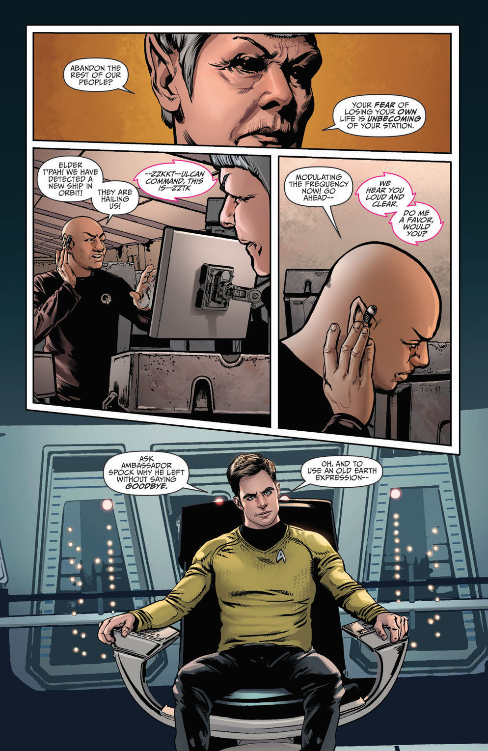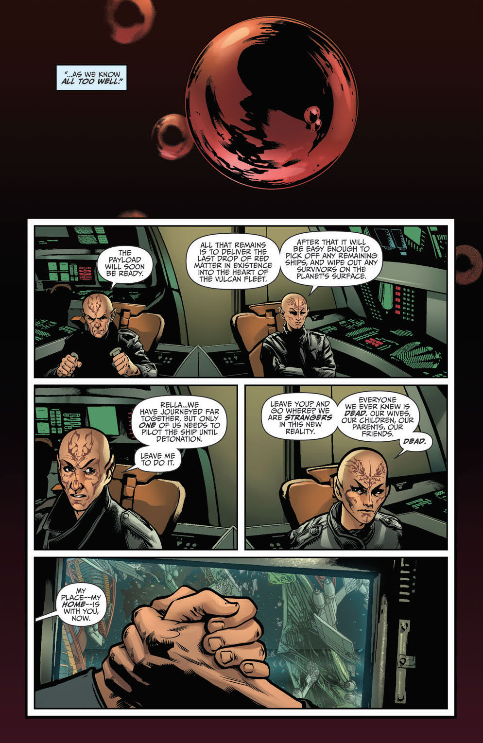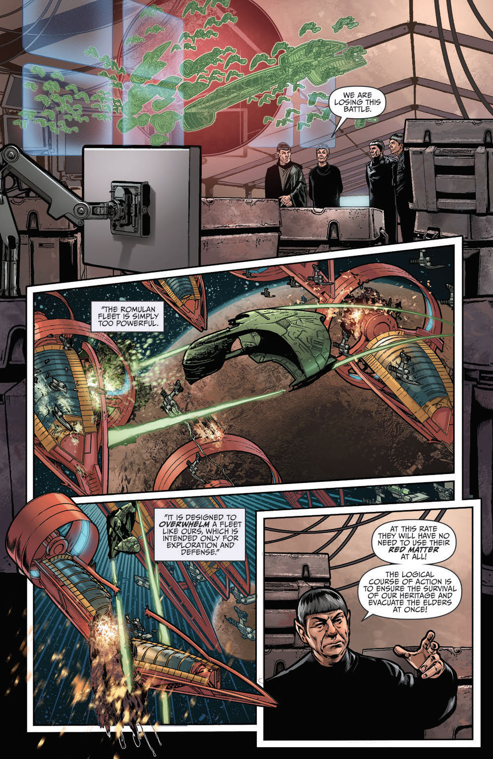 The stunning conclusion of “Legacy of Spock”! The fate of the Vulcan people hangs in the balance as Spock tries to prevent all-out war with the Romulan Empire! Will the Vulcans find a new homeworld on which to rebuild their civilization… or does this spell the end of their species? Don’t miss the final chapter of this mini-series event celebrating the 50th anniversary of STAR TREK!