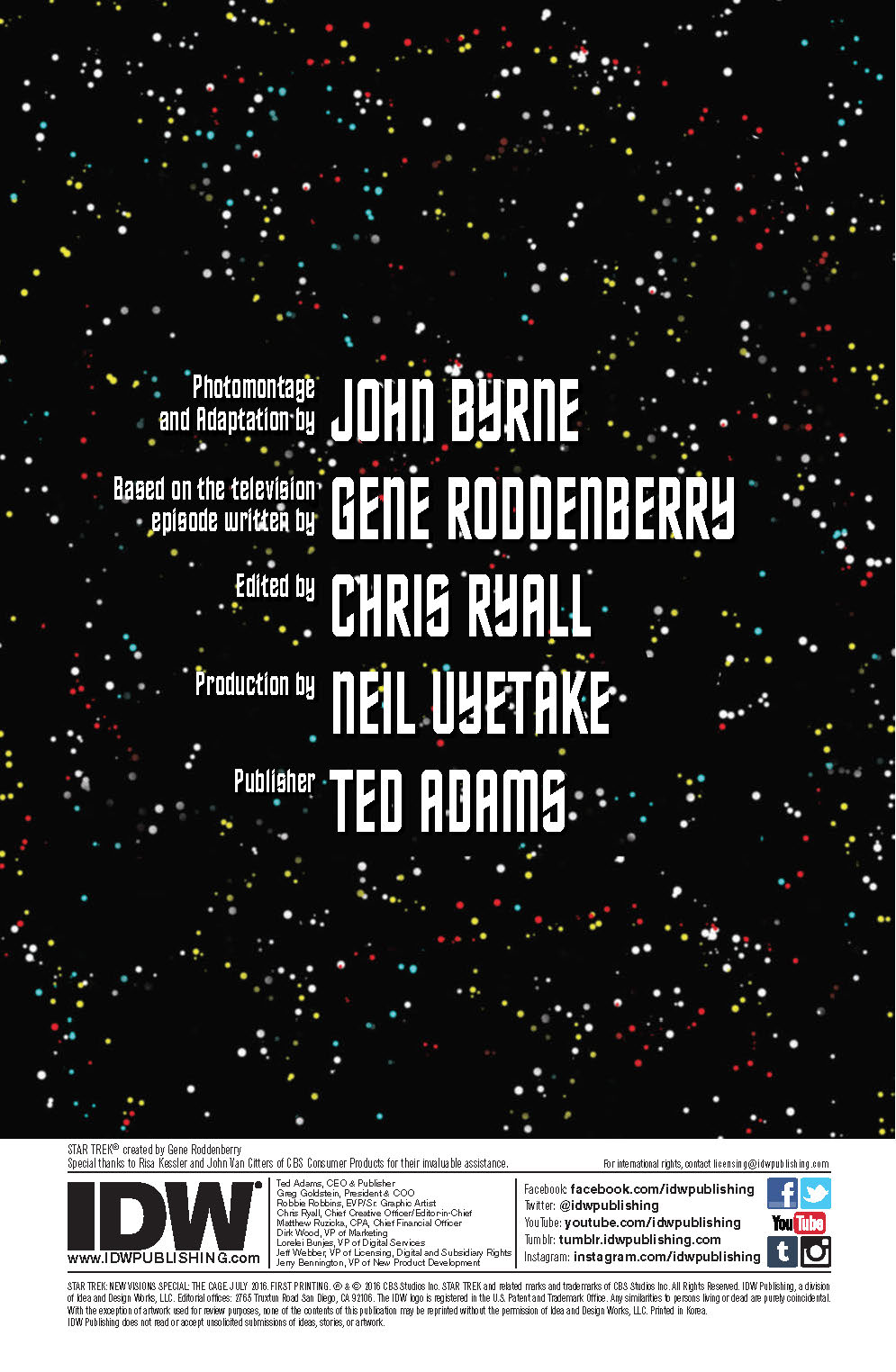 Photo-artist John Byrne puts his skills to use in a unique way in this extra extra-length tale, reinterpreting and adapting the original Star Trek episode “The Cage” to comic-book form. Celebrate Star Trek’s 50th anniversary by revisiting where it all started, in this one-of-a-kind storytelling style!