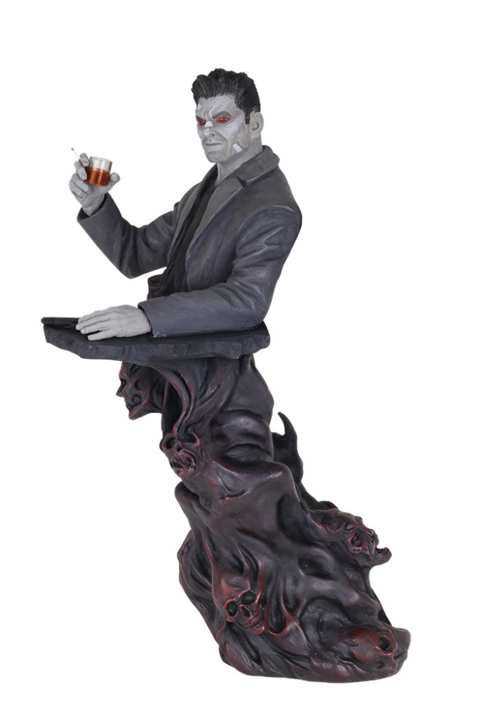 Our bust, sculpted by horror specialist William Paquet, shows Cal with the tools of his trade. The base is an artistic swirl of demons emerging from the ether.