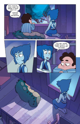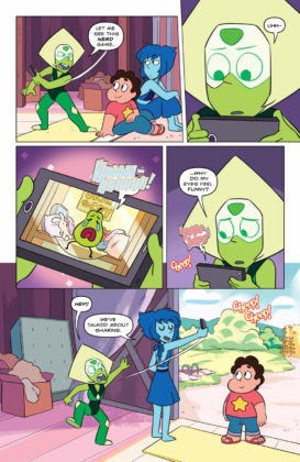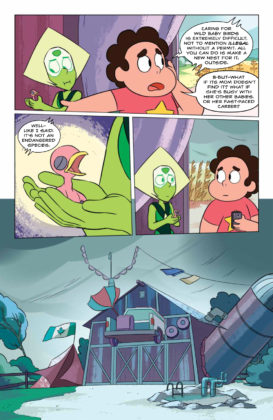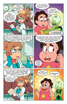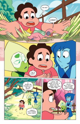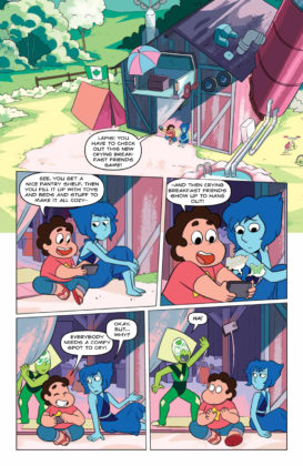 Synopsis: Writer Melanie Gillman (As the Crow Flies) and artist Katy Farina (The Amazing World of Gumball) team up for the start of a new series of adventures! This first collected edition includes stories where the Gems help a lost baby bird, enter a food truck competition, go to a prom, and take part in a Renaissance Faire! Collects issues #1-4.