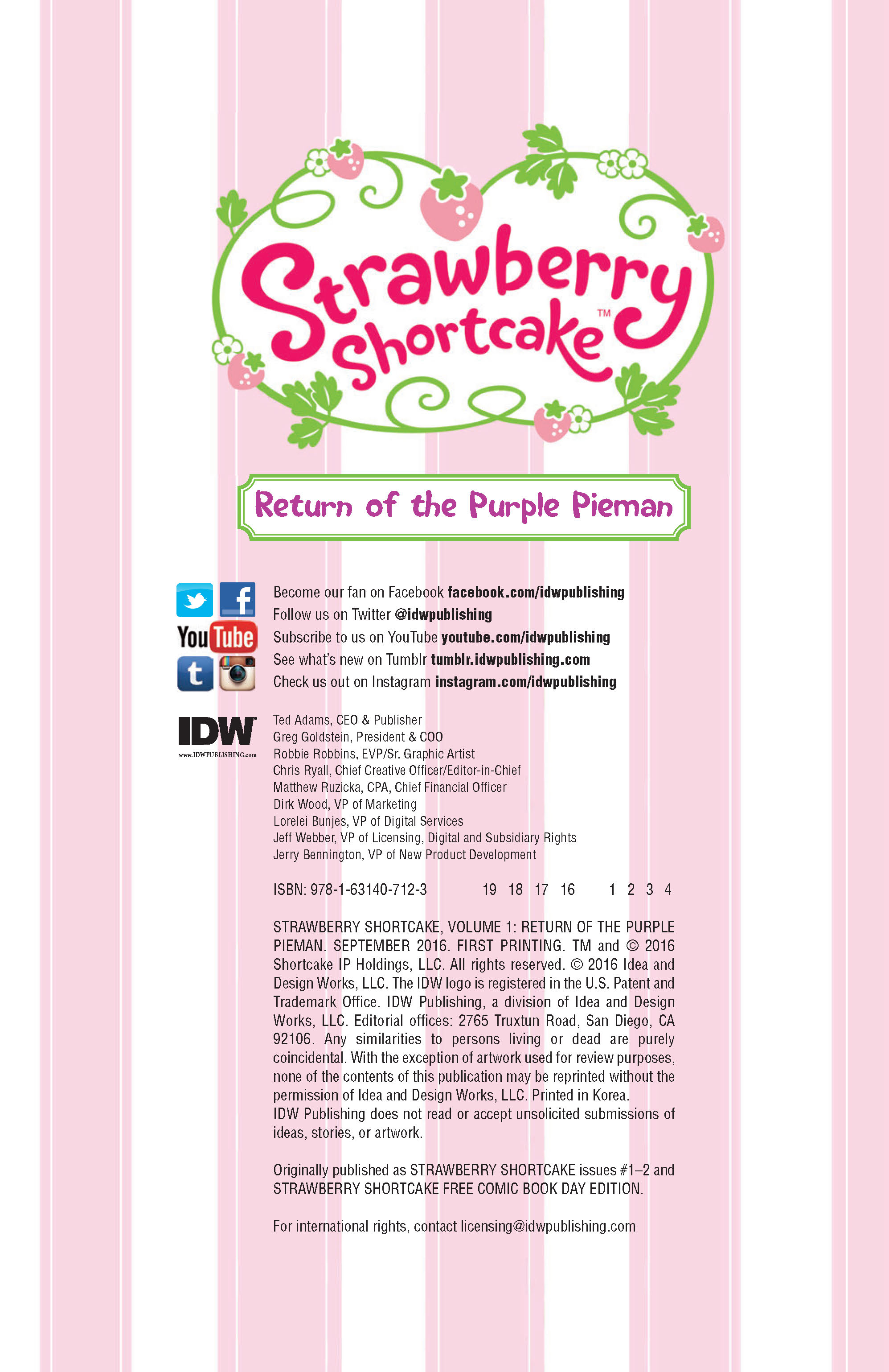 Strawberry Shortcake returns to comics! And along with her comes the return of one of her most nefarious foes, the Purple Pieman! Join us for this berry special story re-introducing everyone’s favorite bad baker to the current Strawberry Shortcake mythos! Collects issues #0–2.
