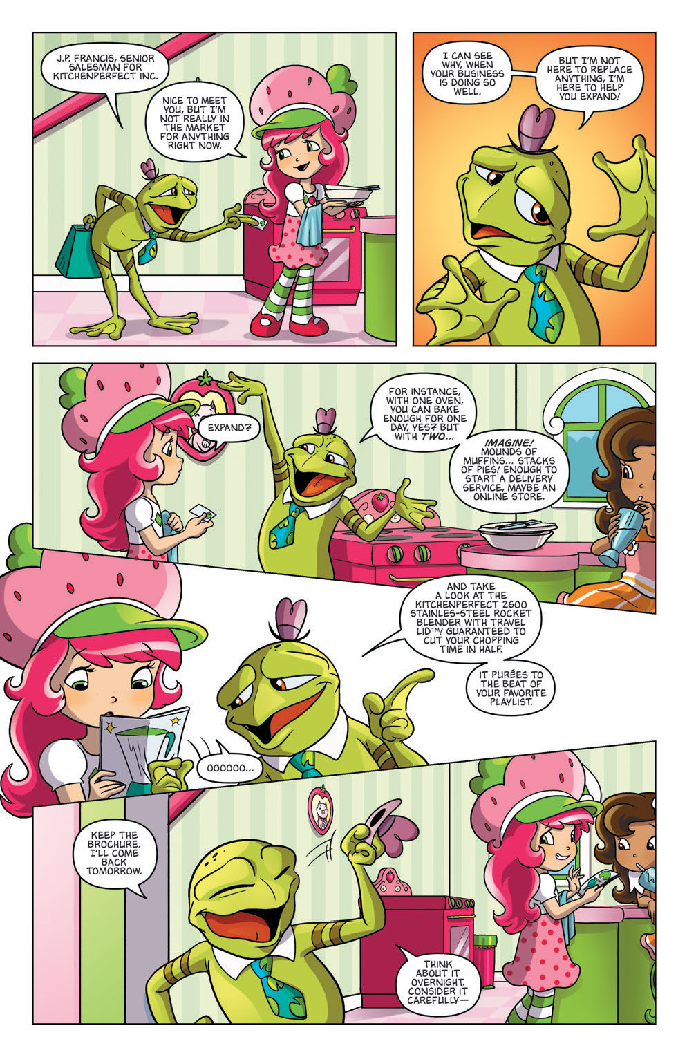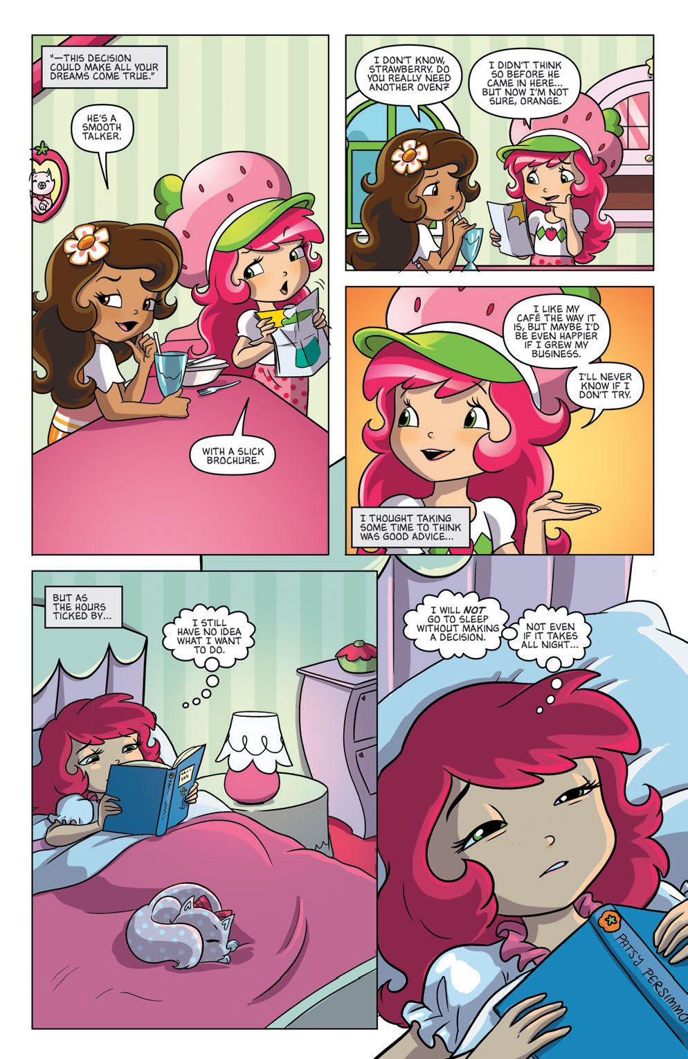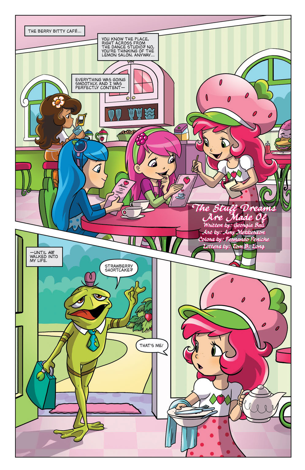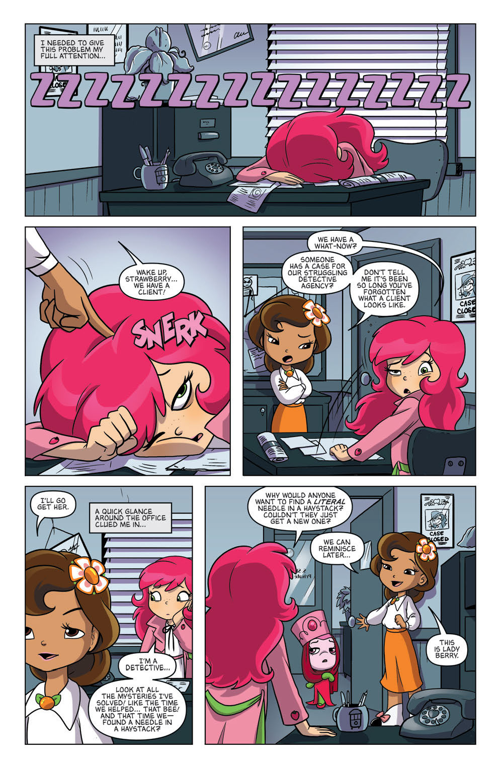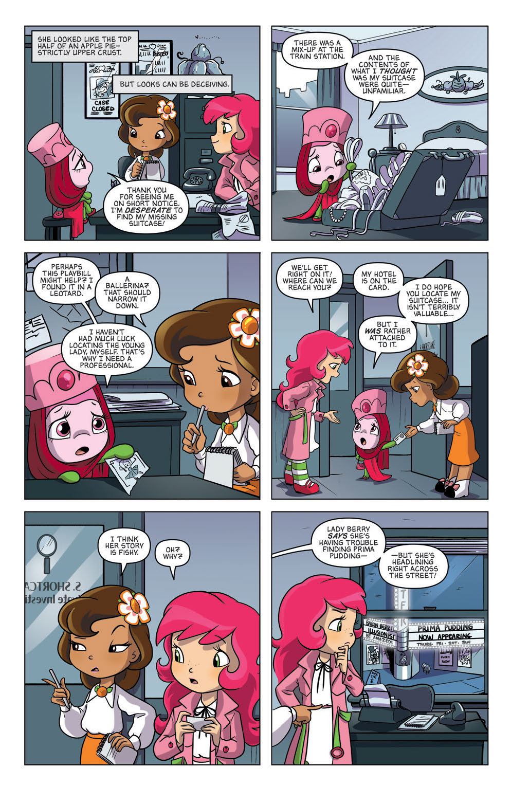A smooth-talking salesman tries to convince Strawberry Shortcake her café needs an overhaul and the Berry Bitty baker tries to sort out her decision in dreamland in the midst of a tense mystery. Detective Shortcake and her able assistant Orange Blossom are hot on the case! Collects issues #3–5.
