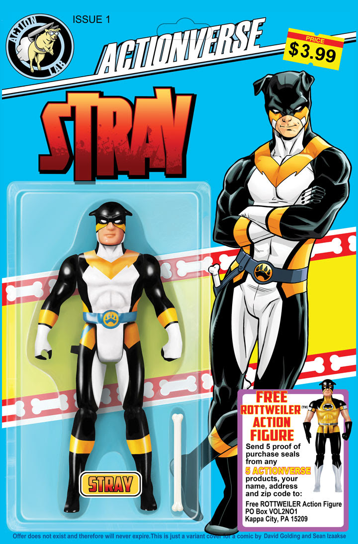 STRAY is written by Vito Delsante with art by Sean Izaakse and newcomer, Lee Gaston. Colors are by Wilson Ramos, Jr and Chris O’Halloran. ACTIONVERSE #1 featuring Stray will launch with a two covers by Izaakse and an action figure variant by David Golding (INFESTED EARTH).