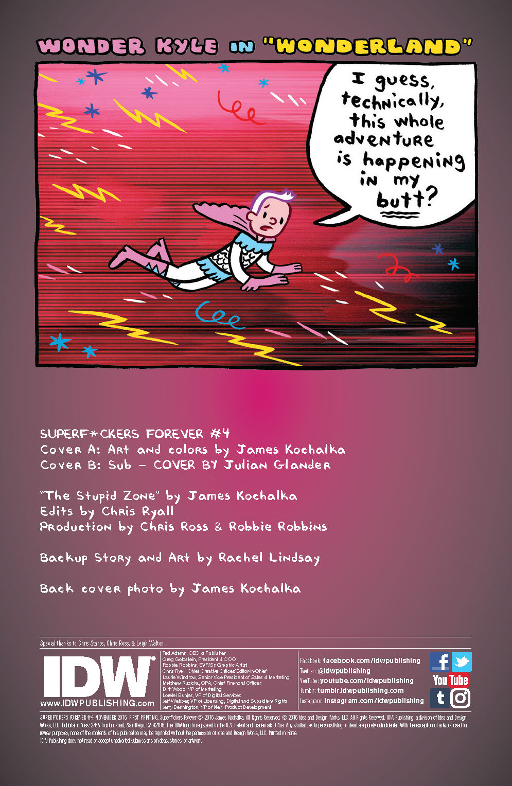 James Kochalka leads his team into “The Stupid Zone” as only he can… Also features an overheated back-up tale by Rachel Lindsay!