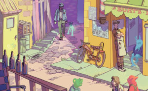 “This is one of those sky-high concepts that hits like a bolt from the blue and won’t let go: an alternate reality where worship has replaced technology and money,” explained Spurrier. “Drench it in an exhausted late-’50s aesthetic—all greaser quiffs and hotrod bullies—fill it with monsters and mobsters, get it drawn by literally the most exciting young newcomer in comics today…and away you go. Like all good genre fiction, Godshaper has the means to say a loooooot about our own world, and—sure—it’s packed to the brim with tasty thematic platefuls of religion, greed, prejudice, consumerism, vanity, crime, war… It’s all there. But at its big, throbbing heart this is a story about two super-likable outcasts on a surreal, scary, sexy, and utterly singular journey through a world which hates them.“