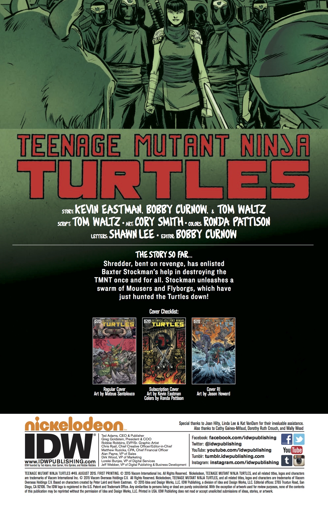 Tom Waltz, Kevin Eastman (w) • Mateus Santolouco (a & c)