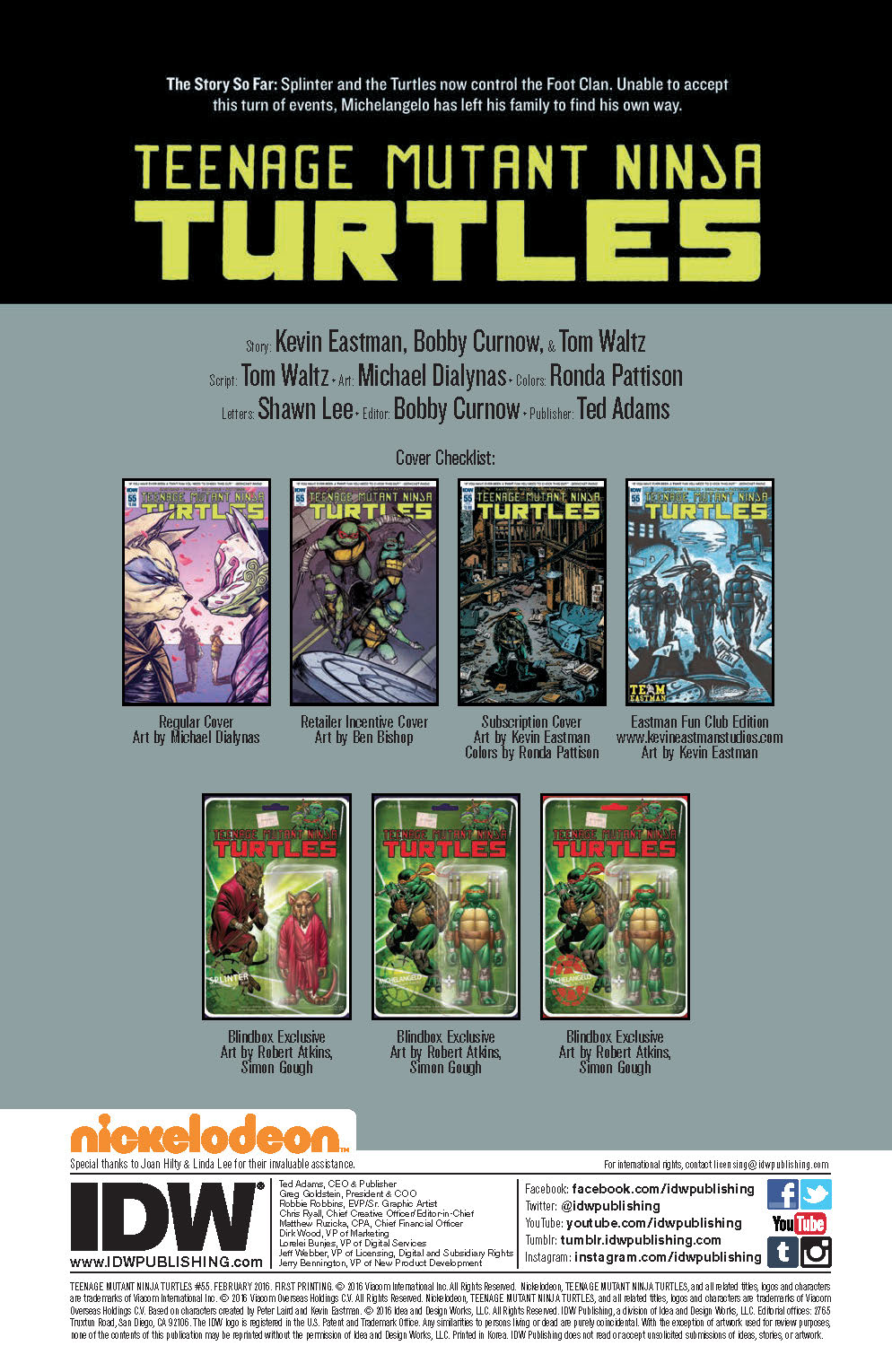 Tom Waltz, Kevin Eastman (w) • Michael Dialynas (a & c)