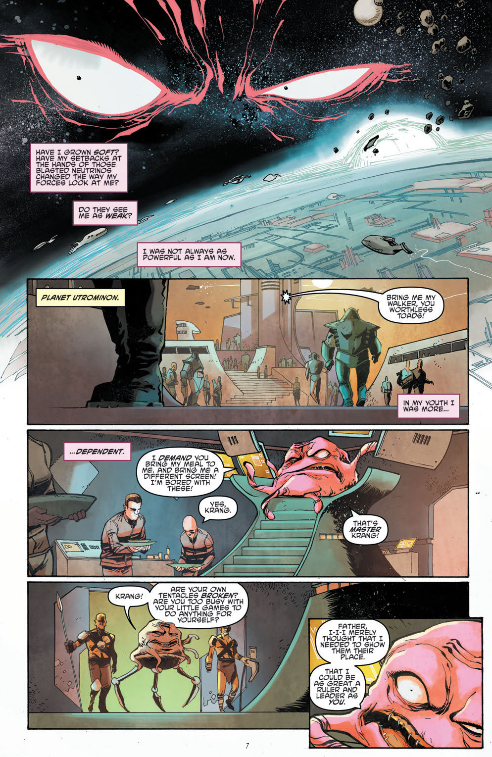 The spotlight shines on the Turtles’ fiercest enemies in this collection with stories about Alopex, Baxter Stockman, Bebop and Rocksteady, Hun, Karai, Krang, Old Hob, and Shredder.