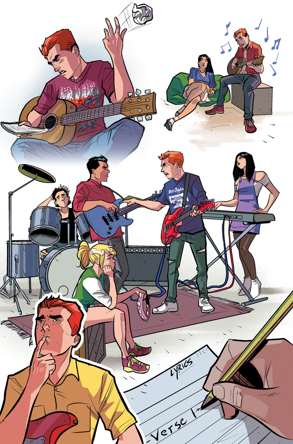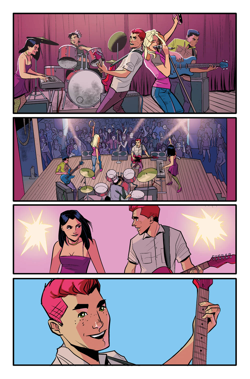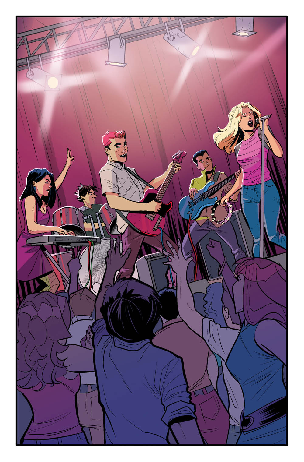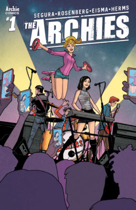 THE ARCHIES #1 is the first issue of the new ongoing series by co-writers Alex Segura and Matt Rosenberg, artist Joe Eisma, and colorist Matt Herms featuring Archie, Betty, Veronica, Jughead, and Reggie going on their first tour together as a band – and encountering special musical guest-stars along the way.