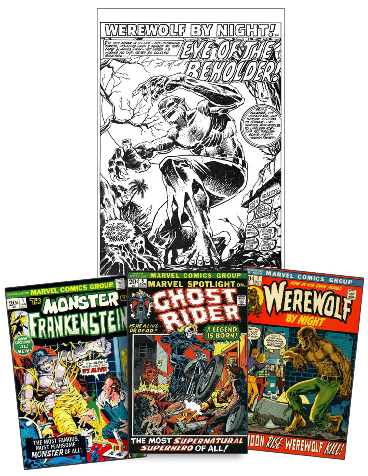 First it starts out with his early works from his career in the military working for Leathernecks magazine to other projects that were before his career in comics. Before his time at Marvel he was working for Warren Publishing on magazines such as Creepy, Eerie and Vampirella. When he was approached by Marvel he not only worked on the amazing series Werewolf by Night but other series as well including The Monster of Frankenstein and Tomb of Dracula. What I love about these illustrations is we get to see the black and white mockups for the covers and then in color. Some of the painted covers are simply stunning!