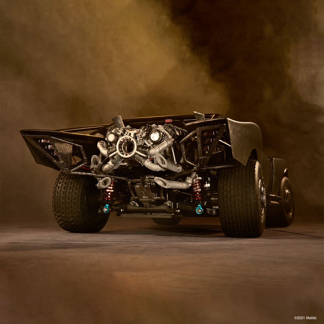 “The Batman” Batmobile from Hot Wheels R/C features epic remote-control performance with authentic details and movie-like sculpts for the adult collector and fan of Batman’s iconic vehicles. This Batmobile model was designed for collectors who appreciate premium design and precision performance in replica vehicles. This 1:10 scale Ultimate edition features movie accurate graphics, LED lights, smoke and flame FX from both the hood and the rear, detailed exterior and interior, a Batcave-inspired plinth, and a poseable Batman figure behind the wheel. It boasts high-tech features such as light and sound effects and working suspension, as well as a diorama plinth that both Alfred and the Caped Crusader would appreciate for its authenticity. This is a must-have for fans of and distinguished R/C collectors.