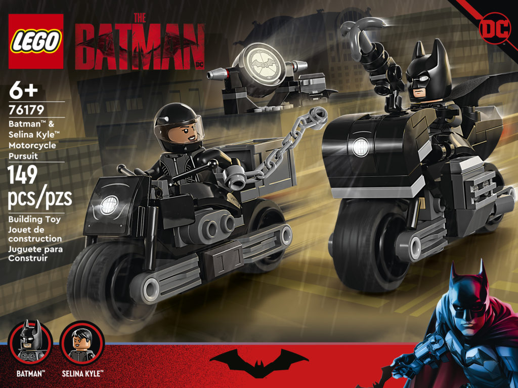 “The Batman” takeover began at DC FanDome in fall 2021 when LEGO®, Hot Wheels and McFarlane announced authentic toys and collectibles. The LEGO® brand’s collection includes three building sets, featuring minifigures based on Batman, Selina Kyle, Alfred and Lieutenant Gordon, along with Super-Villains The Riddler and The Penguin. The collection’s new sets are: Batcave: The Riddler Face-off ($79.99 USD), Batmobile: The Penguin Chase ($29.99 USD), and the Batman and Selina Kyle Motorcycle.