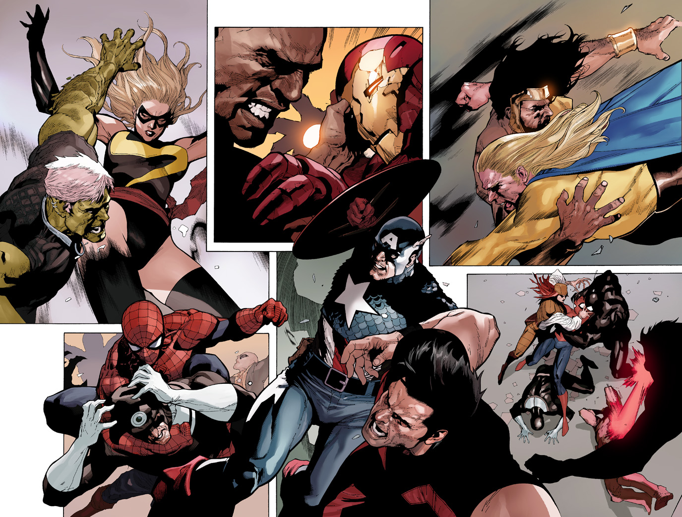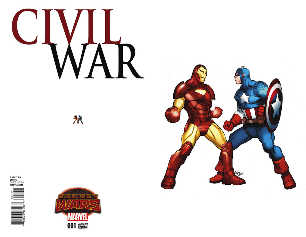 New York, NY—June 11th, 2015— The war never ended. And the deadly conflict escalates to new heights this July! Today, Marvel is pleased to present your new look atCIVIL WAR #1 – from chart-topping creators Charles Soule (Death of Wolverine, Inhuman) and Leinil Yu (Avengers)! Hero fights hero in the Warzone – and a nation stands divided. It has been six years since the fighting began. The forces of the Blue square off against the Iron, all at the command of their leaders – General Steve Rogers and President Tony Stark. When peace has failed, both sides will attempt to end the war once and for all! What is the top-secret Project Bellcurve and does it really hold the key to ending the war in one swift stroke? What damning data could undo President Stark’s administration from within? And worst of all, what unseen enemies seek to exploit the Superhuman Civil War for their own gains? Find out as one of the biggest stories in Marvel history is reborn on Battleworld in CIVIL WAR #1! Whose side are you on?