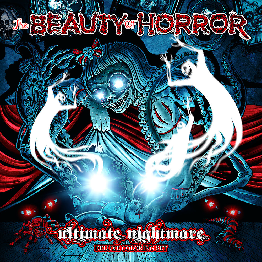 From the Pages of Alan Robert’s Bestselling Horror Coloring Book Series Comes The Beauty of Horror: Ultimate Nightmare, Deluxe Coloring SetSAN DIEGO, CA (April 13, 2018) – Just when you thought it was safe to pack your colors away, creator Alan Robert returns with The Beauty of Horror: Ultimate Nightmare, Deluxe Coloring Set. Get your claws around twelve oversized illustrations that you can color and frame from the bestselling horror series. Each 12” x 12” MONSTER-sized print allows for an even more fun coloring experience with its large spaces and one-sided, deluxe coloring format. This GOREgeous print collection includes fan favorites from The Beauty of Horror Volume One, Volume Two: Ghouliana’s Creepatorium, Volume Three: Haunted Playgrounds, and features three, brand-new Alan Robert exclusives!