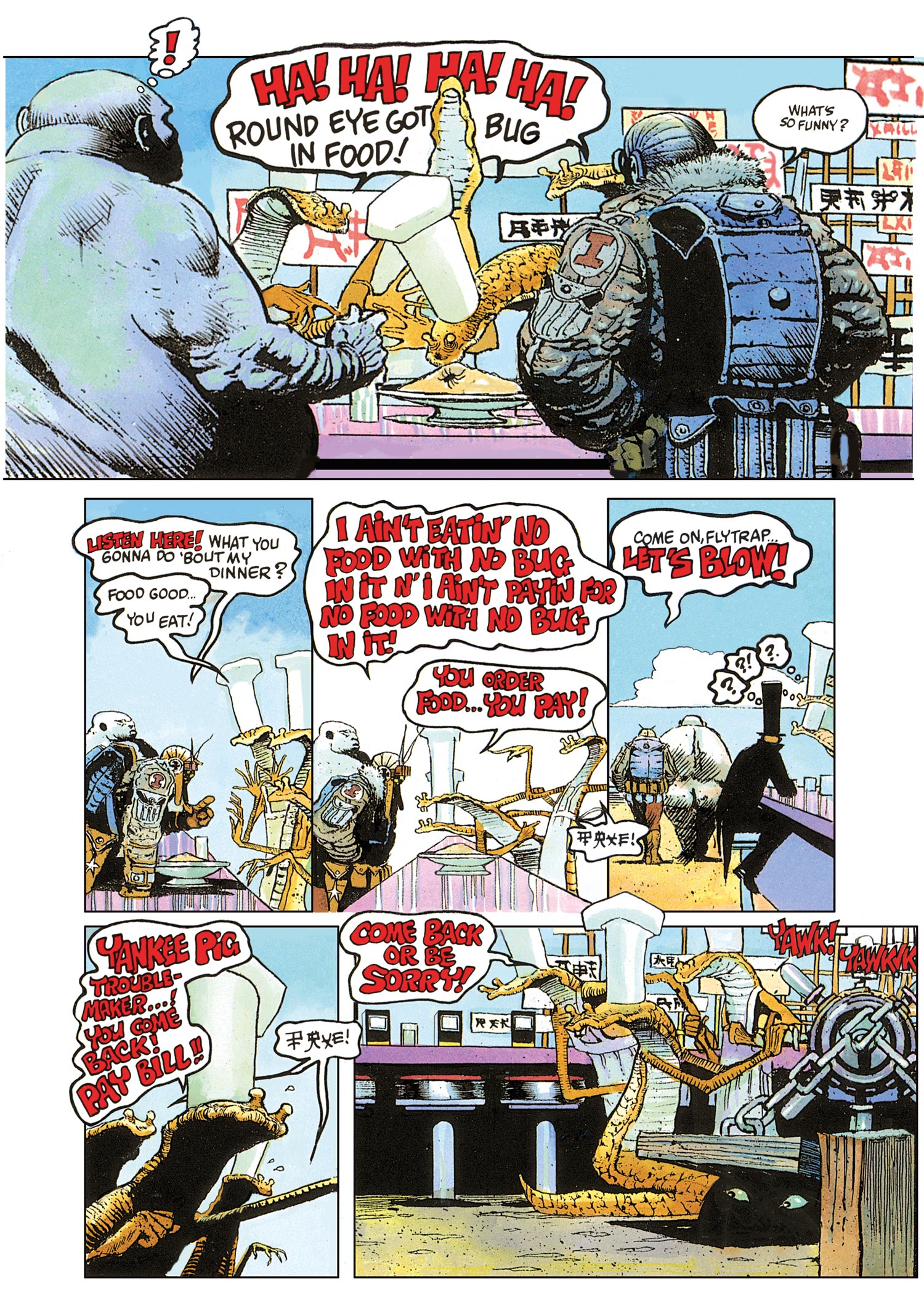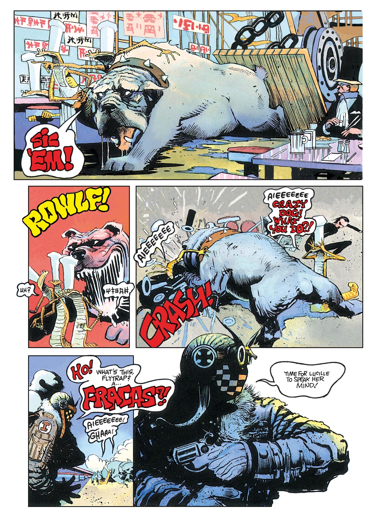 Spawned by legendary artist and writer Arthur Suydam – blockbuster cover illustrator on Marvel Zombies – Cholly & Flytrap are survivors on a distant planet, barely held together with catgut and scar tissue, Cholly’s always there with a snappy one-liner and quick-draw machine-gun fire. Flytrap is silent as the grave, built like a brick privy and graceful as a charging rhino.