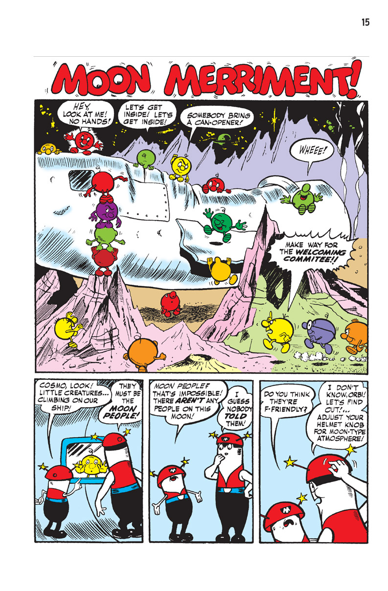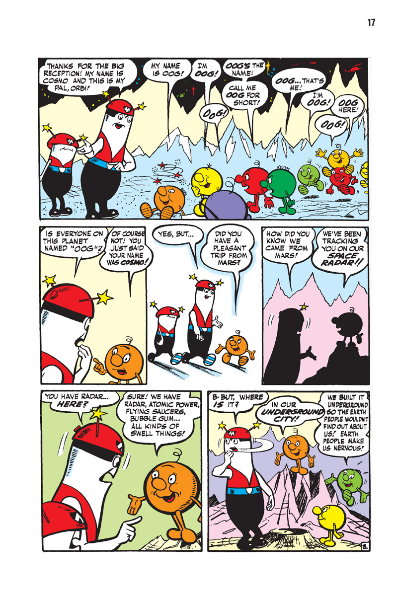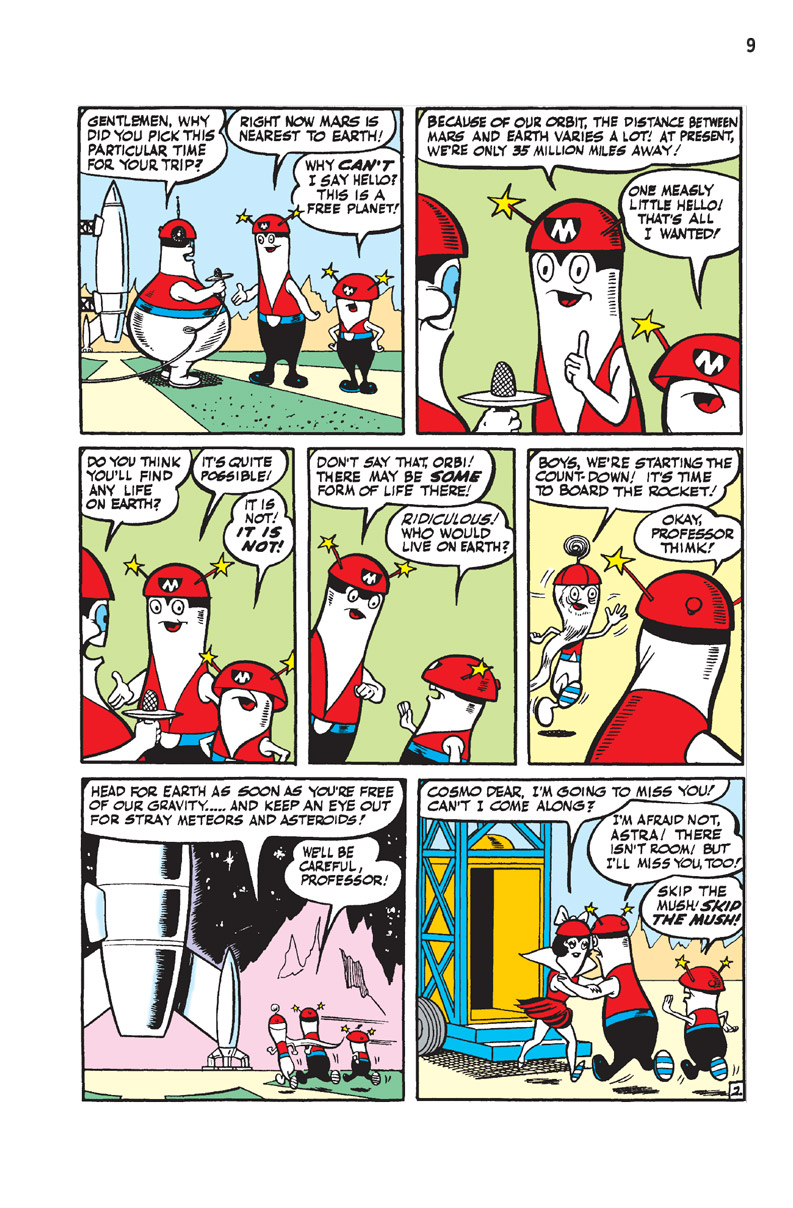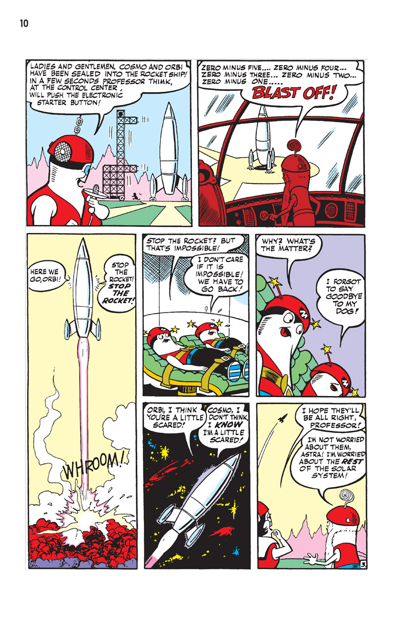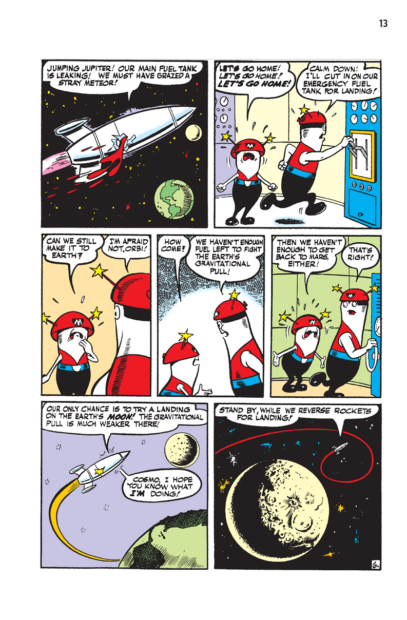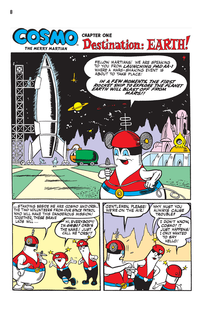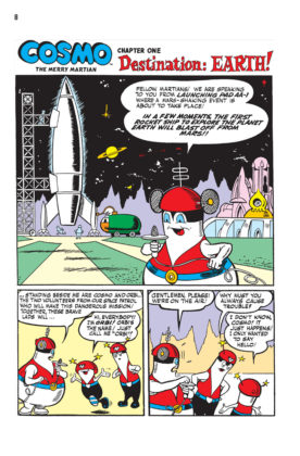Take a ride in a UFO with Cosmo the Merry Martian! For the first time ever, this classic interplanetary tale has been collected into one giant-size collection. Join Cosmo, Orbi, Astra and all their wacky friends as they explore the unknown and discover all-new life forms. What adventures will these Martian explorers find on Jupiter, or Venus, or even Earth?! Put on your spacesuit and find out!