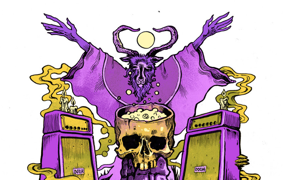 In five decades of wretched existence, doom metal has evolved into a vast orchard of unearthly delights. Bongs, goats, amps and a lot of naked nuns, all collide into this stunningly visualized, whimsical, mature-rated gift book. Explore the genre’s unholy rites with THE DOOMSTER’S MONOLITHIC POCKET ALPHABET, the definitive illustrated lexicon of all things doom. Or be doomed!