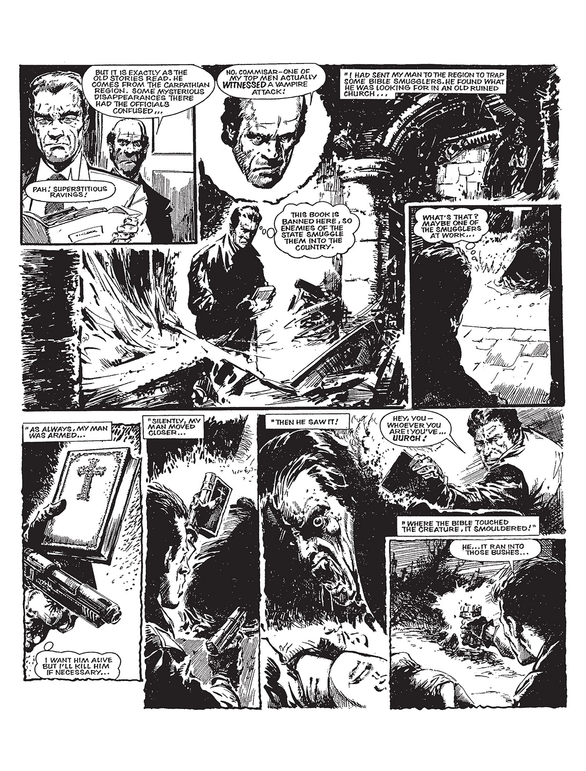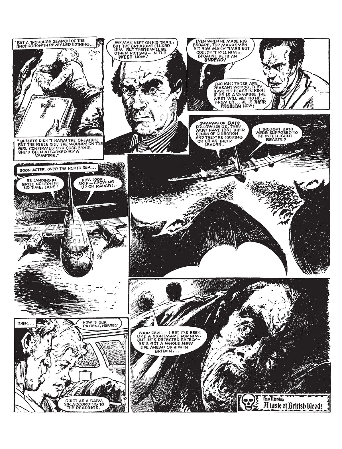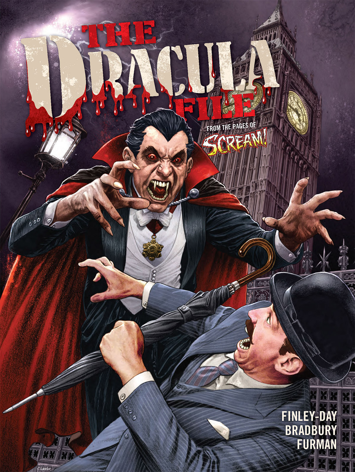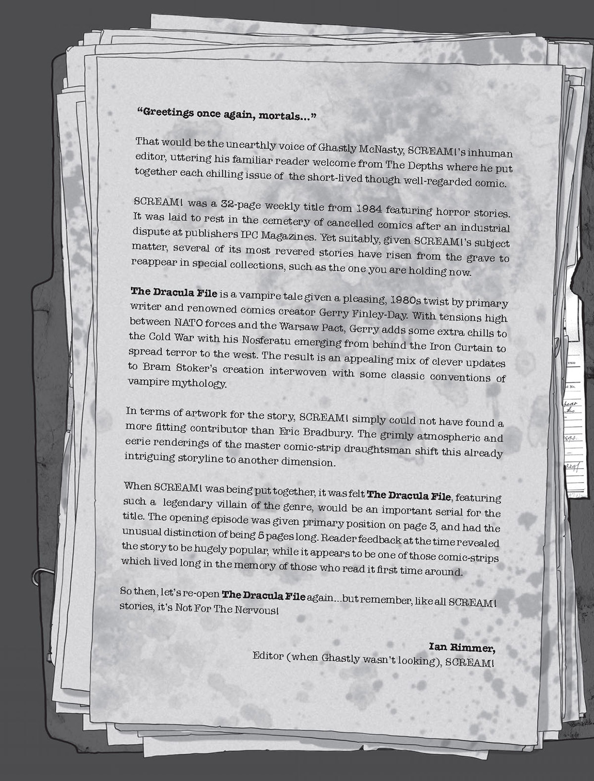 Fleeing vampire hunters from behind the iron Curtain, Count Dracula returns to Great Britain with an unquenchable thirst for blood! Unable to accept that the supernatural defector has slipped through his fingers, Rumanian KGB officer Stakis decides to defy his disbelieving superiors and destroy the unholy horror that has plagued the world for centuries. Will 1980s London become the Count’s permanent, new feeding ground? Written by 2000 AD stalwart Gerry Finley-Day and featuring Eric Bradbury’s nightmarish vision of horror’s greatest icon, The Dracula File is a book that you can really sink your teeth into!