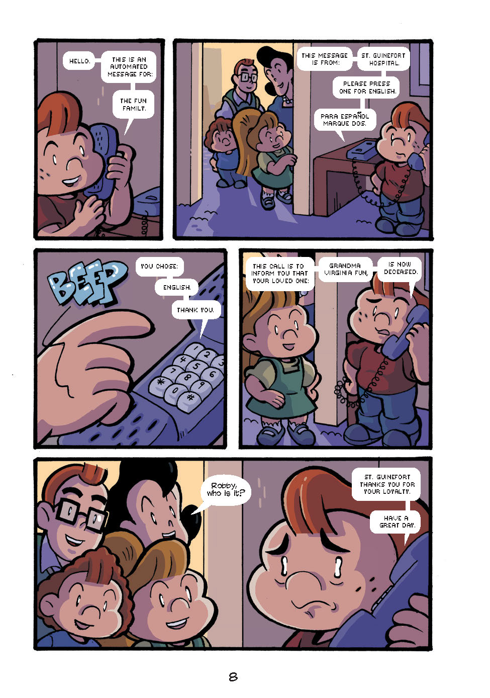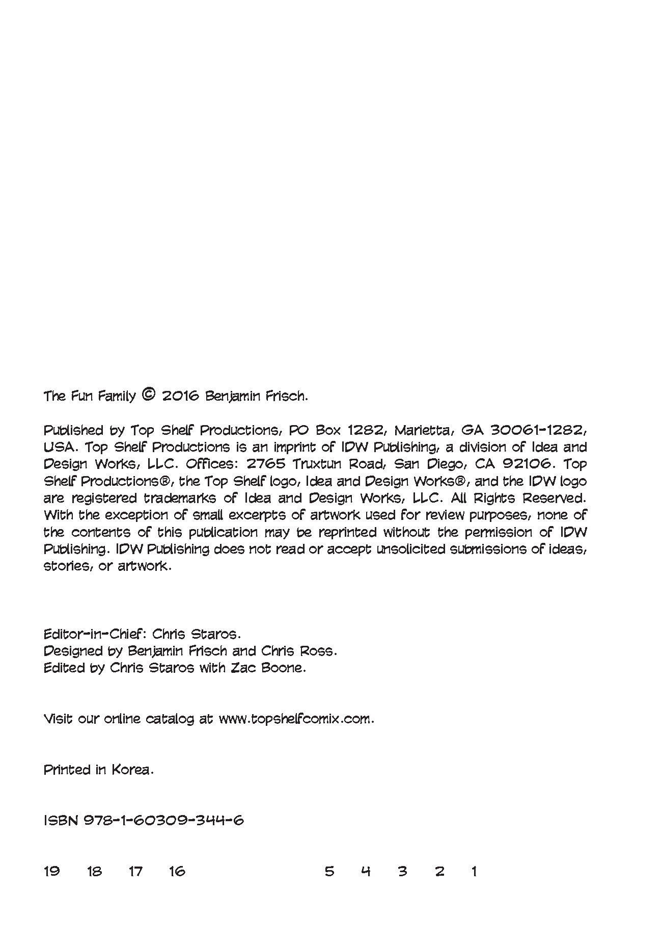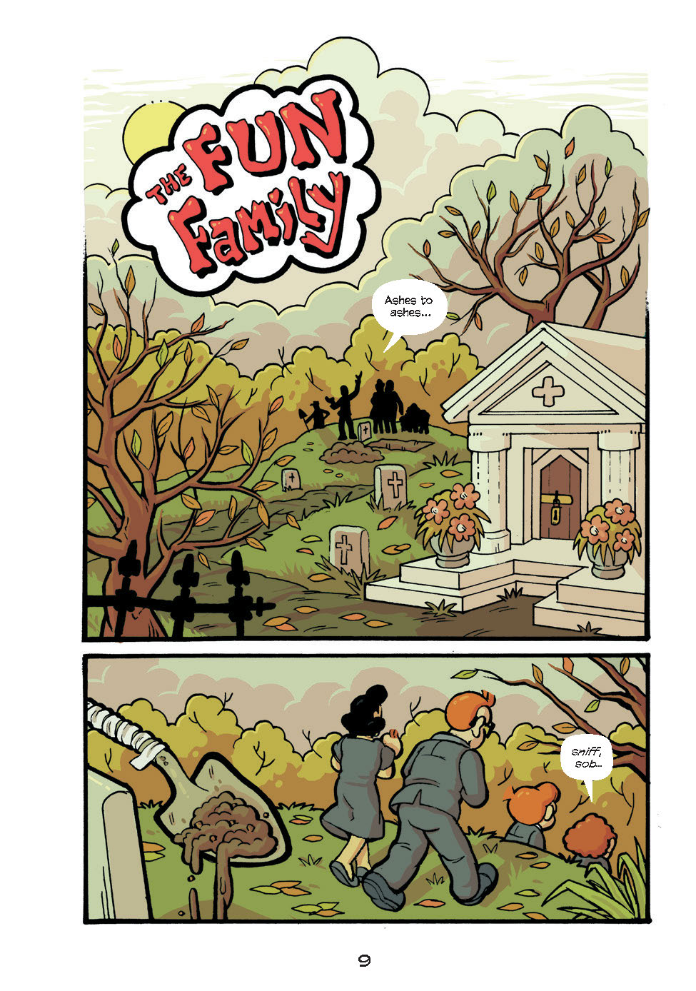 Beloved cartoonist Robert Fun has earned a devoted following for his circle-shaped newspaper comic strip, celebrating the wholesome American family by drawing inspiration from his real home life… but the Fun Family bears some dark secrets. As their idyllic world collapses and the kids are forced to pick up the pieces, can they escape the cycle of art imitating life imitating art? In his debut graphic novel, Benjamin Frisch presents a surreal deconstruction of childhood, adulthood, and good old American obsession.