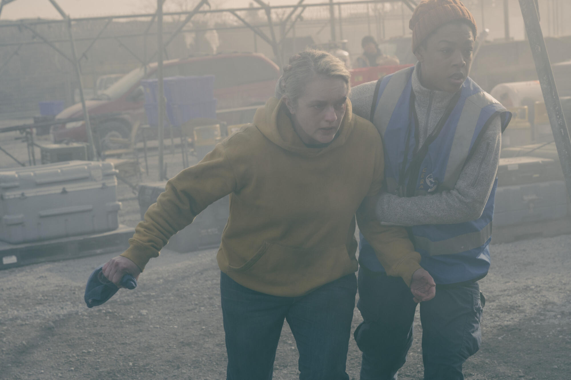 With Chicago in ruin, we find June who much like her surroundings is shell-shocked. In a daze and fumbling to find Janine, Moira’s voice helps to bring things into focus. Moira discovering June is like seeing someone again for the first time. Concussed and in shock it’s only during the ride to the CERA’s humanitarian aid depot that June recognizes her long lost friend.