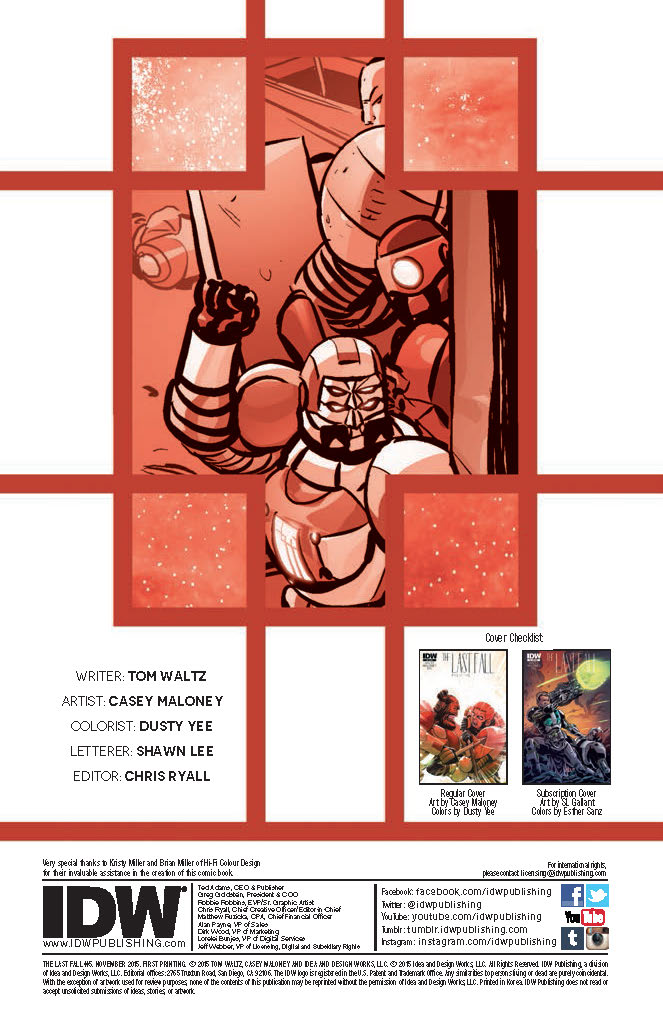 IDW’s original sci-fi/military drama concludes! Marcus Fall’s future is decided in the explosive final confrontation with the enemies of his present and the ghosts of his past. Written by Tom Waltz (Teenage Mutant Ninja Turtles).