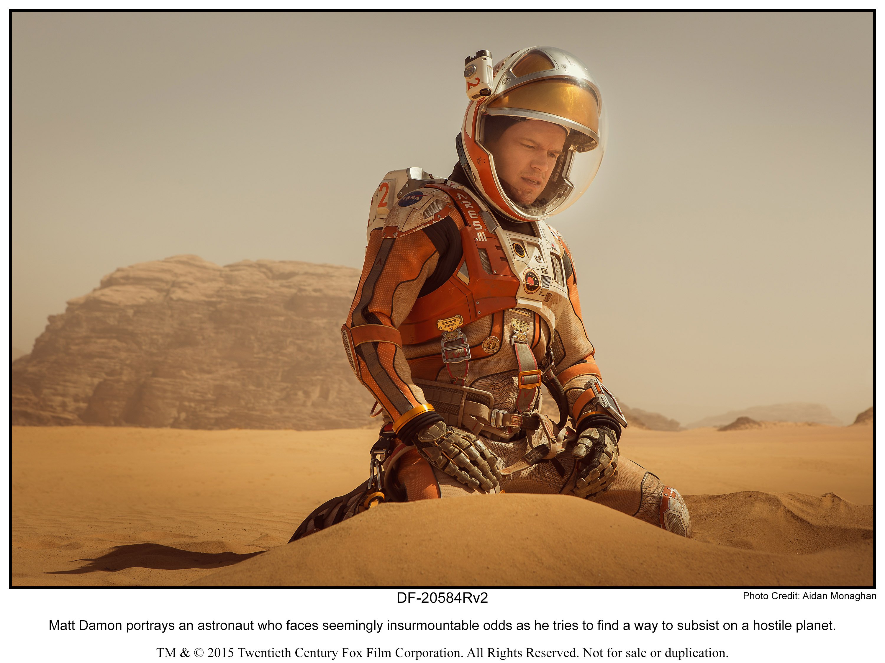 Based on the novel by Andy Weir, Ridley Scott’s The Martian is one of those rare science fiction blockbusters where the star-studded cast takes a backseat to the science itself. When a violent storm interrupts a team of NASA astronauts conducting research on Mars, the evacuating crew reluctantly leave Mark Watney (Matt Damon), who was hit flying by debris from their own antenna, behind under the presumption that he is dead. Little do they know that Watney has actually survived the freak accident and is stranded on the arid planet. As death looks imminent, he only has a limited food supply available, Watney decides to use his botanist expertise to “science the shit” out of everything in hopes of surviving until the next mission crew arrives in four years time.