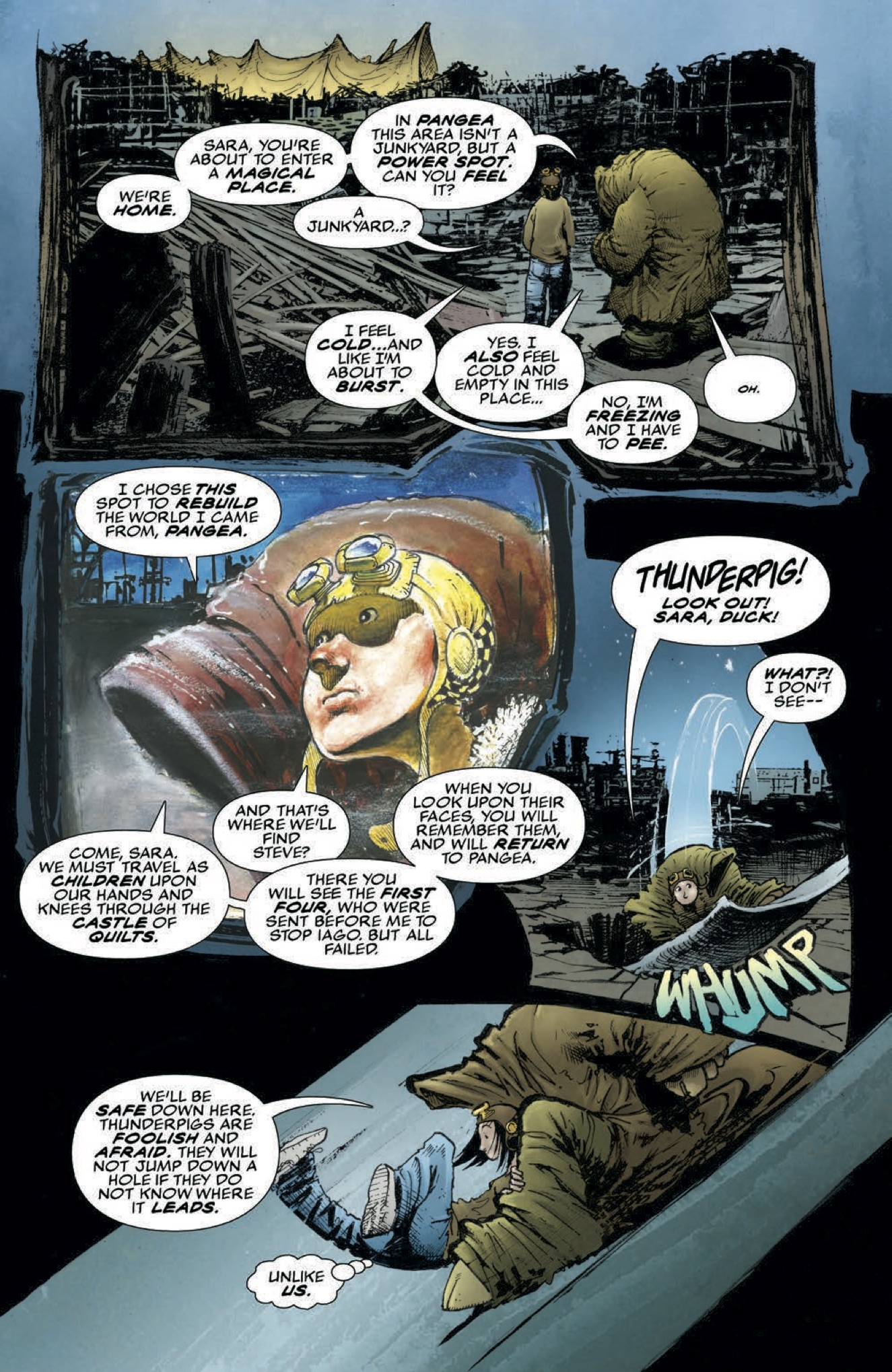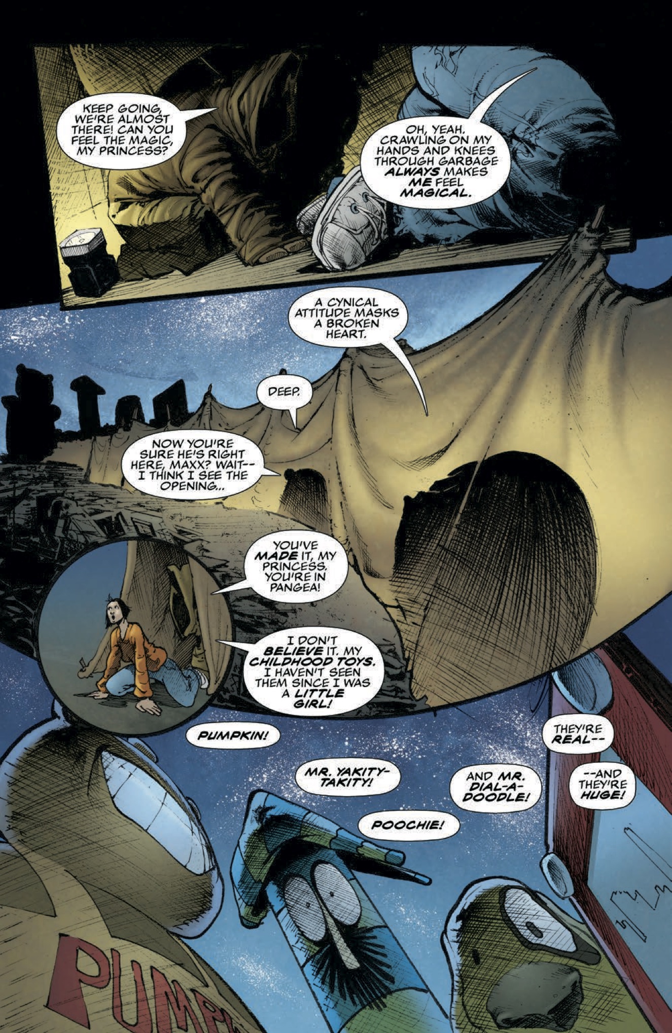 Sara’s “Horse” Maxx takes her on a journey through a childhood maze of blankets draped over lawn chairs and there she discovers Artie/Gone in a surreal hallucination. Meanwhile a thug named Pablo picks the wrong dumpster to squirt mustard into… as the threat of the Yellow Slug looms.