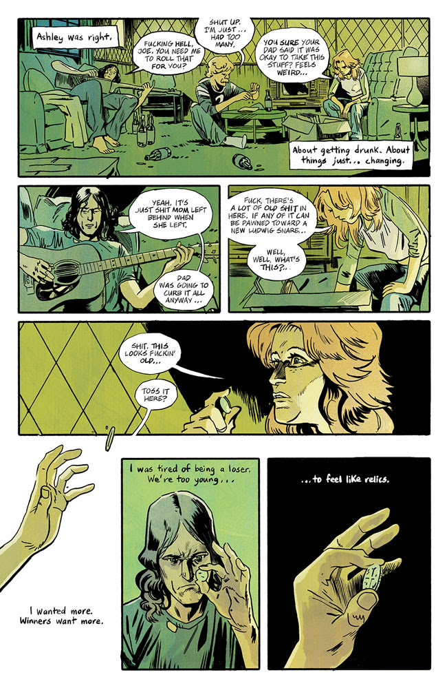 Each issue of The Silver Coin will tell a tale of terror in a shared supernatural world interwoven with common characters and overlapping stories. The series begins in 1978 with a failing rock band whose fortune suddenly changes when they find the mysterious Silver Coin. Little do they know that fame comes with a cost, and a curse is always hungry.