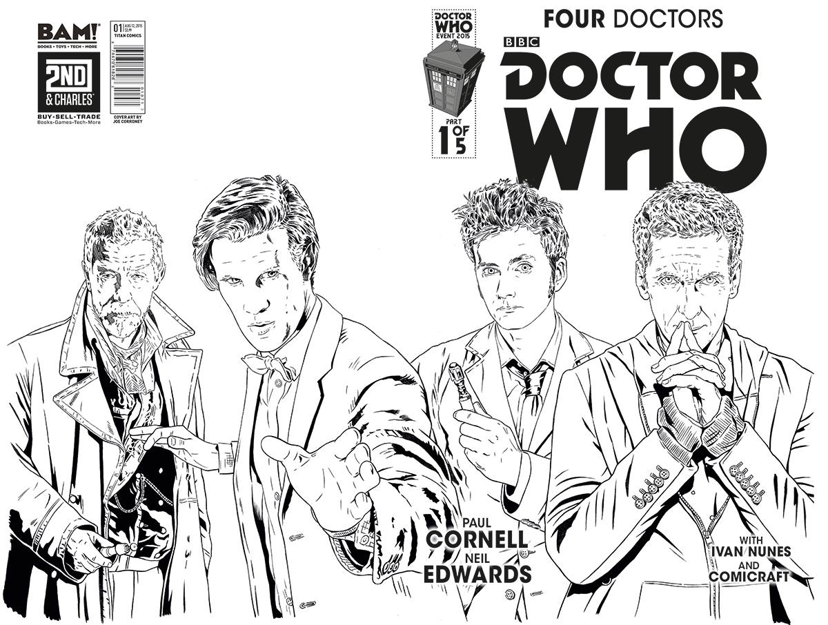Look out for a number of Doctor Who: Four Doctors #1 variant covers to pick up on Doctor Who Comics Day from stores including: Alien Entertainment; Books-A-Million; Borderlands; Cafe Anime; Forbidden Planet; Geppi’s Entertainment Museum; Hastings; Hot Topic; Jester Comics; Newbury Comics; Third Eye; Twilight Comics; and The Who Shop.