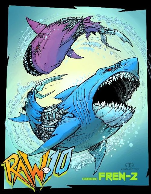 FREN-Z is the king of the ocean—every ocean. He is a mix of robotics and the DNA of a Great White Shark combined with the prehistoric Megalodon Super Shark for extra terror. FREN-Z was created to be the prototype for a new breed of aquatic weaponry. But the dangerous minds at the Robotic Animal Warrior (RAW) labs did their job too well, and FREN-Z escaped. Now he stalks the oceans, an unstoppable hunter—part-shark, part-machine, all-deadly.