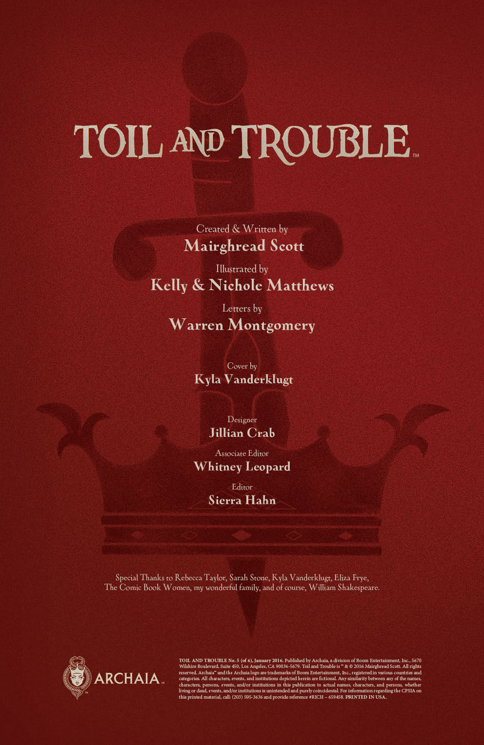 PreviewsArchaia Toil and Trouble #5 By Comix Asylum - Jan 4, 2016 0 631 FacebookTwitterPinterestWhatsApp Toil and Trouble #5 Imprint: Archaia Writer: Mairghread Scott Artists: Kelly & Nichole Matthews Smertae and Riata battle with Macbeth’s fate hanging in the balance. Toil and Trouble #5 1 of 7