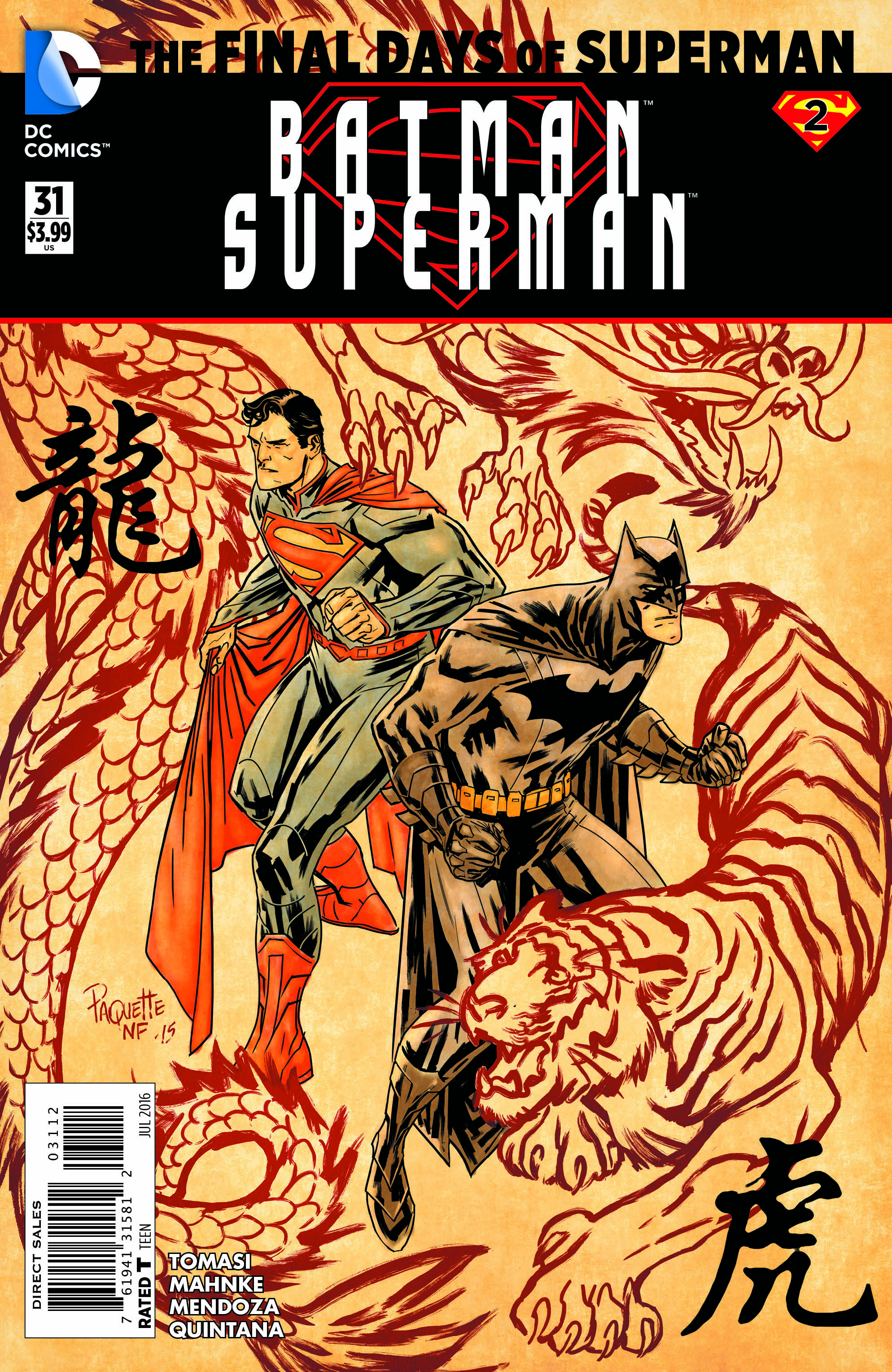 The last four issues including BATMAN/SUPERMAN #32, ACTION COMICS #52, SUPERMAN/ WONDER WOMAN #29 and the grand finale SUPERMAN #52 will be released with the trade dress in their original print run.