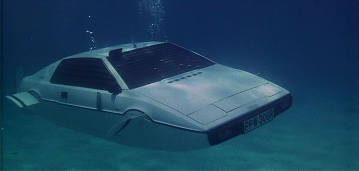 Bond and fine cars have gone hand in hand for over 50 years. After the DB5 was retired Bond, this time portrayed by Roger Moore, sped through his adventures behind of the wheel of a Lotus Esprit. The car and its place in pop culture lore is due to its prominent role in 1977’s The Spy Who Loved Me. In the film the Lotus not only races around the Sardinian countryside evading motorcycles and helicopters, but also transforms into a submarine before reverting back into a road vehicle.