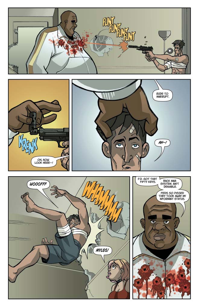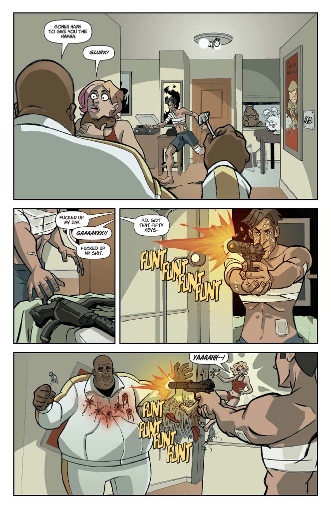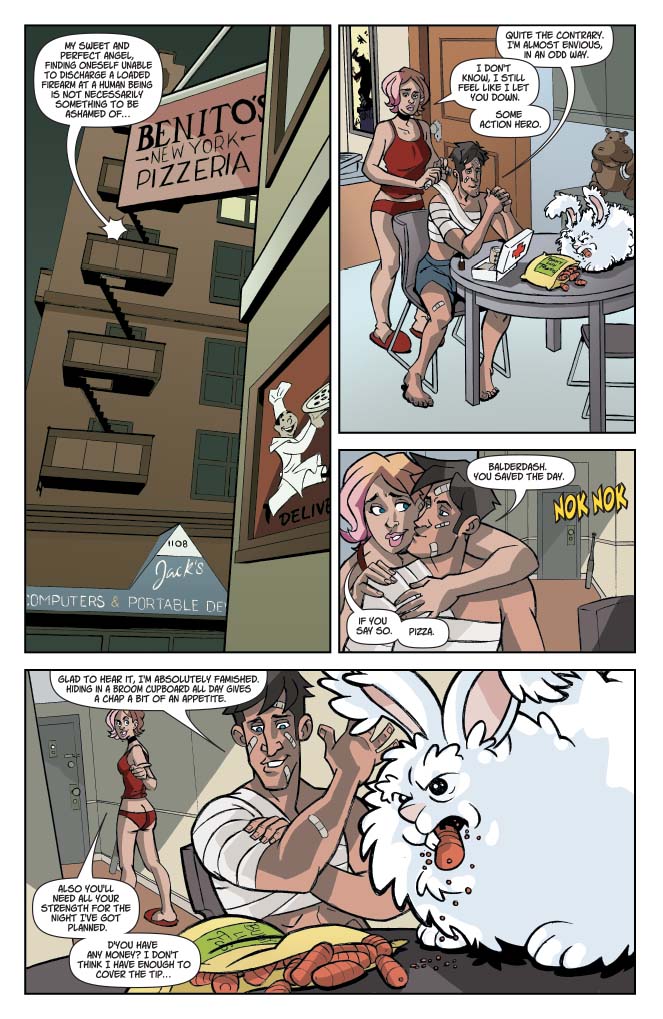 The dust settles, the guns fall silent, and everyone lives happily ever after… apart from all the people that don’t. Five hundred pounds of instant death shows up at Myles and Valerie’s door, while Marv and Penny finally get a chance at true love, but will it be with each other? Call-Me-Dave flies off to the land of dreams, Jev gets the worst news in the world, and at long last Marcy gets to sing her own song. The cast set sail on sea of romance!