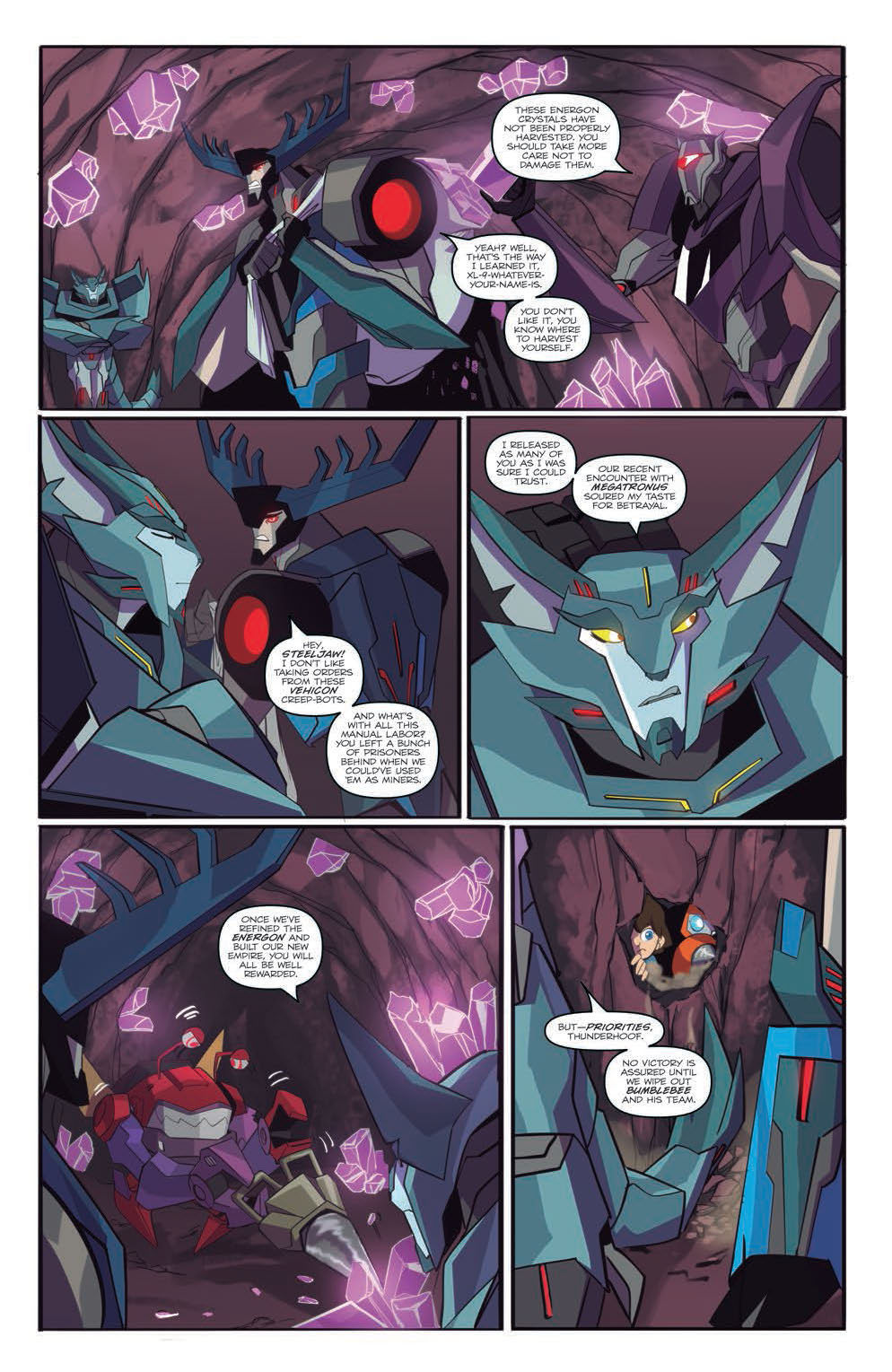 VEHICONS AMOK! When the DECEPTICON called STEELJAW stumbles upon three lost VEHICONS, he convinces them he’s on a mission from MEGATRON—a deception that puts them on a collision course with BUMBLEBEE and company!