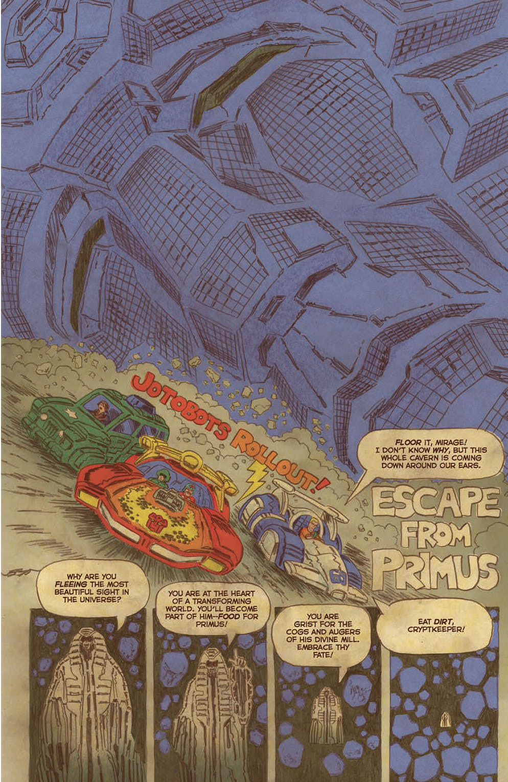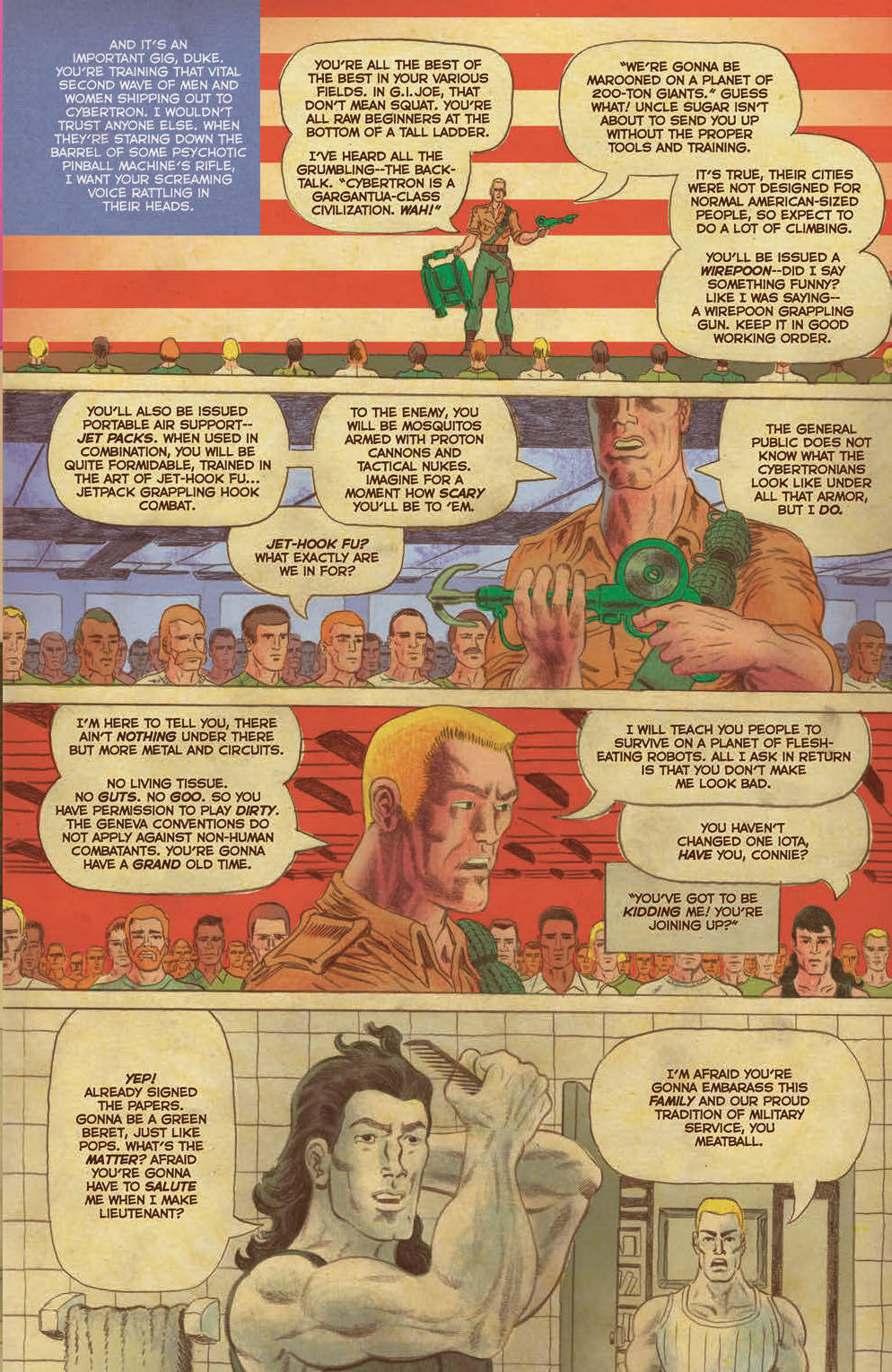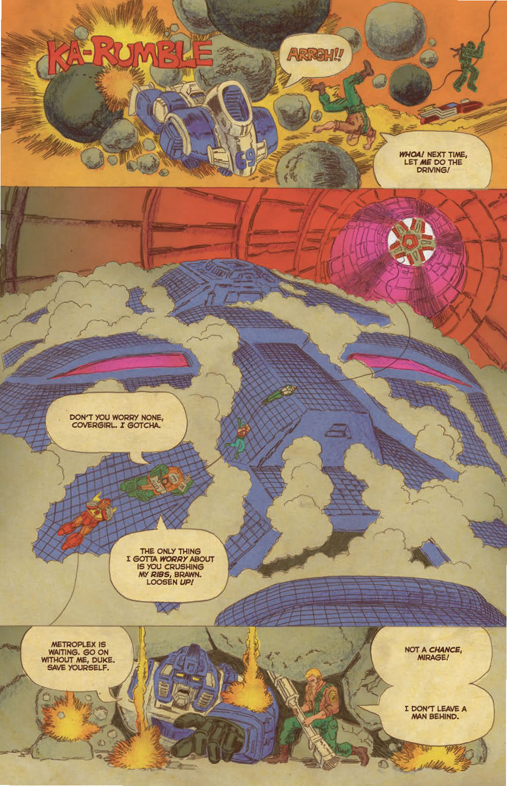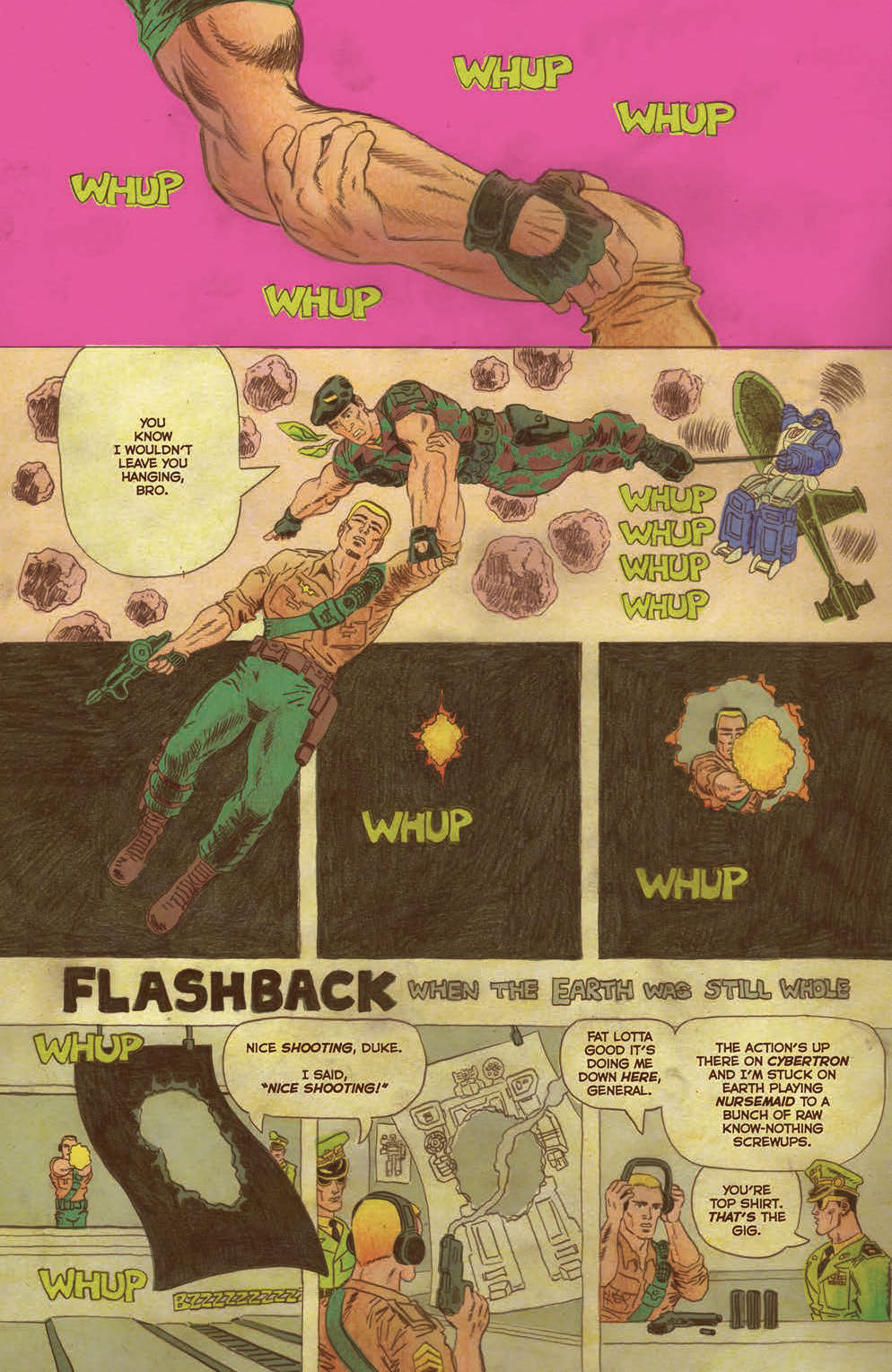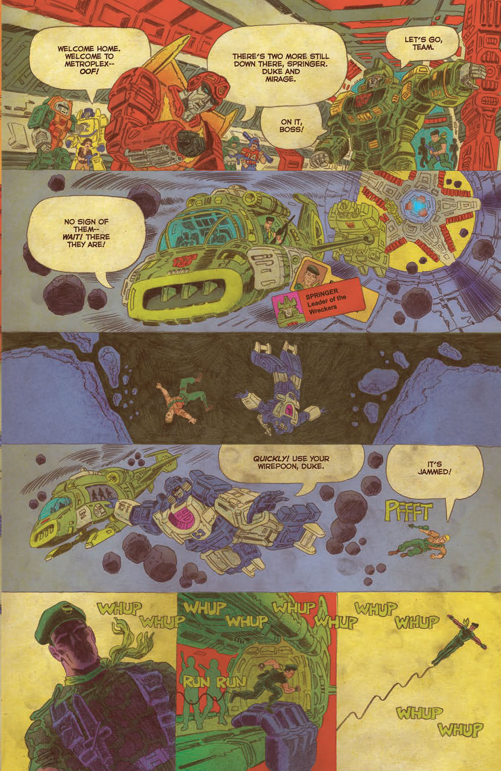 ESCAPE FROM PRIMUS! With Earth no more, the G.I. JOE team battles to make CYBERTRON their new home—but MEGATRON has something to say about that. Hint: it’s “no, I’m not going to let you do that.” Plus: the secret history of DUKE!