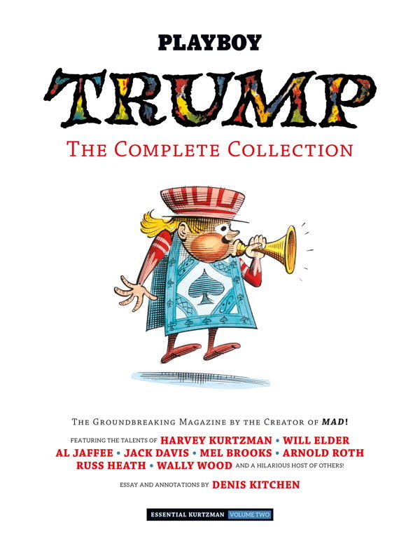 MILWAUKIE, Ore., (Dec. 20, 2016)—Long before America’s president-elect, there was Trump, the groundbreaking 1950s satire magazine from MAD creator Harvey Kurtzman and Playboy publisher Hugh Hefner. Trump: The Complete Collection: Essential Kurtzman Volume Two is a full-color, 184-page hardcover that includes both of the highly sought after printed issues of Trump, now available for the first time in sixty years, as well as the never-before-seen third issue. The collection is designed by C. S. Fossett and edited by Denis Kitchen and John Lind.