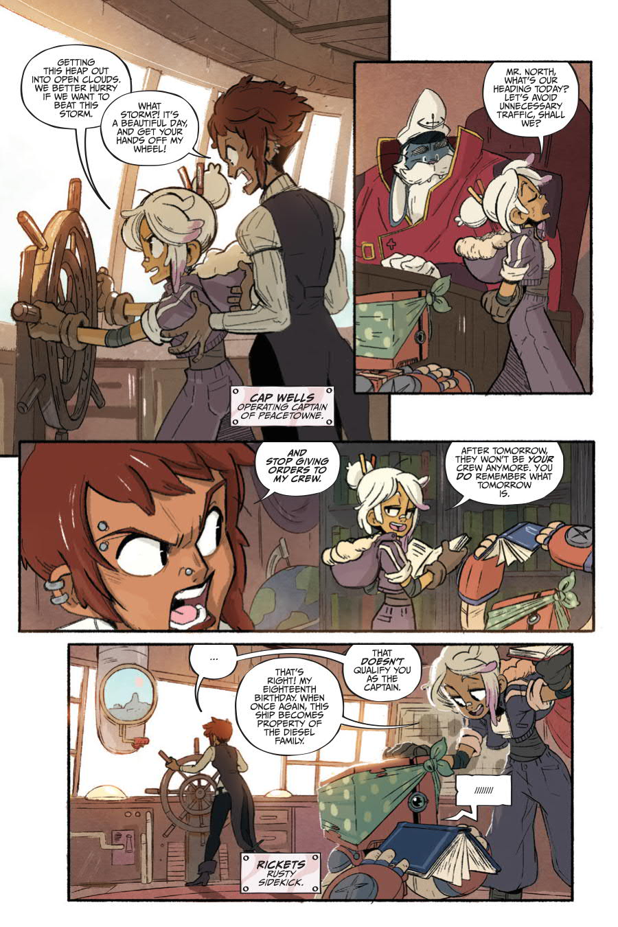 • The first-ever original graphic novel spawning out of Tyson Hesse’s Diesel, Hesse’s popular “punk motif”-inspired, coming-of-age story about Diandra “Dee” Diesel, her mysterious flying engine, and the airship colony she lives on, Peacetowne.
