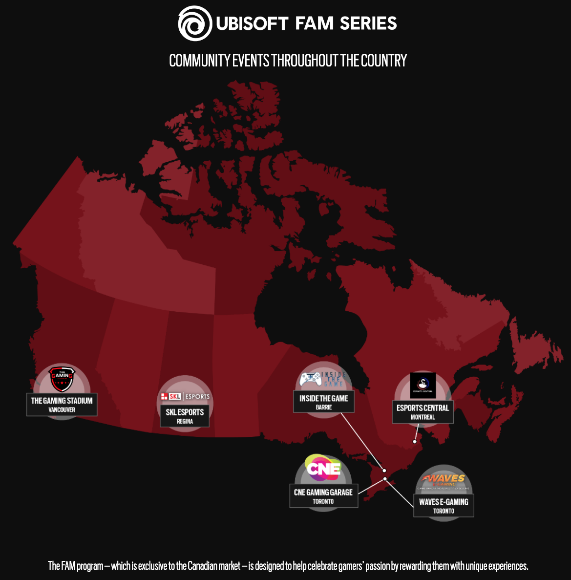 In order to continue to build esports in Canada and help more Canadians perform at higher competitive levels, Ubisoft is proud to present the FAM Series, Rainbow Six Siege community events throughout the country, designed to help celebrate gamers’ passion by rewarding them with unique experiences.