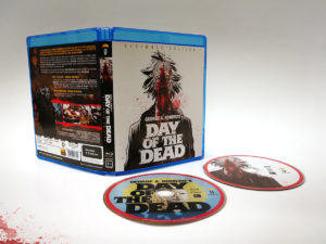 Special features? There are TONS on these two discs (one being blu-ray and the other a DVD) the first disc includes the movie with two audio tracks. The first track has George A Romero, Tom Savini, Cletus Anderson and Lori Cardille and the second has Greg Nicotero, Howard Berger, Everett Burrell and Mike Deak. There are two features that go behind the scenes and one of them is hosted by Tom Savini who did the special effects for the film! There’s also a featurette called Worlds End: The Legacy of Day of the Dead and this massive 85 minute feature has interviews with cast and crew on how this classic was brought to life. There is also an interview with George Romero at MIFF 2008 about his works including this film. Theatrical trailers, TV Spots and a promo for the Gateway Commerce Centre (which was the underground facilities used in the film!). The second disc has Joe of the Dead (which is an interview with Joe Pilato who played Rhodes in the film), Travelogue of the Dead follows Ken Foree and Joe Pilato as they go through an organized tour through Scotland and Ireland meeting fans along the way. If you wanted to know how Day of the Dead came to be then check out the Many Days of the Dead which shows the evolution on how Day of the Dead came to be. And last but not least there is Reflections on the Living Dead which is kind of the odd man out as it deals with how Night of the Living Dead was made. However, you should check this out as they talk to not only George A Romero but John Russo as well!