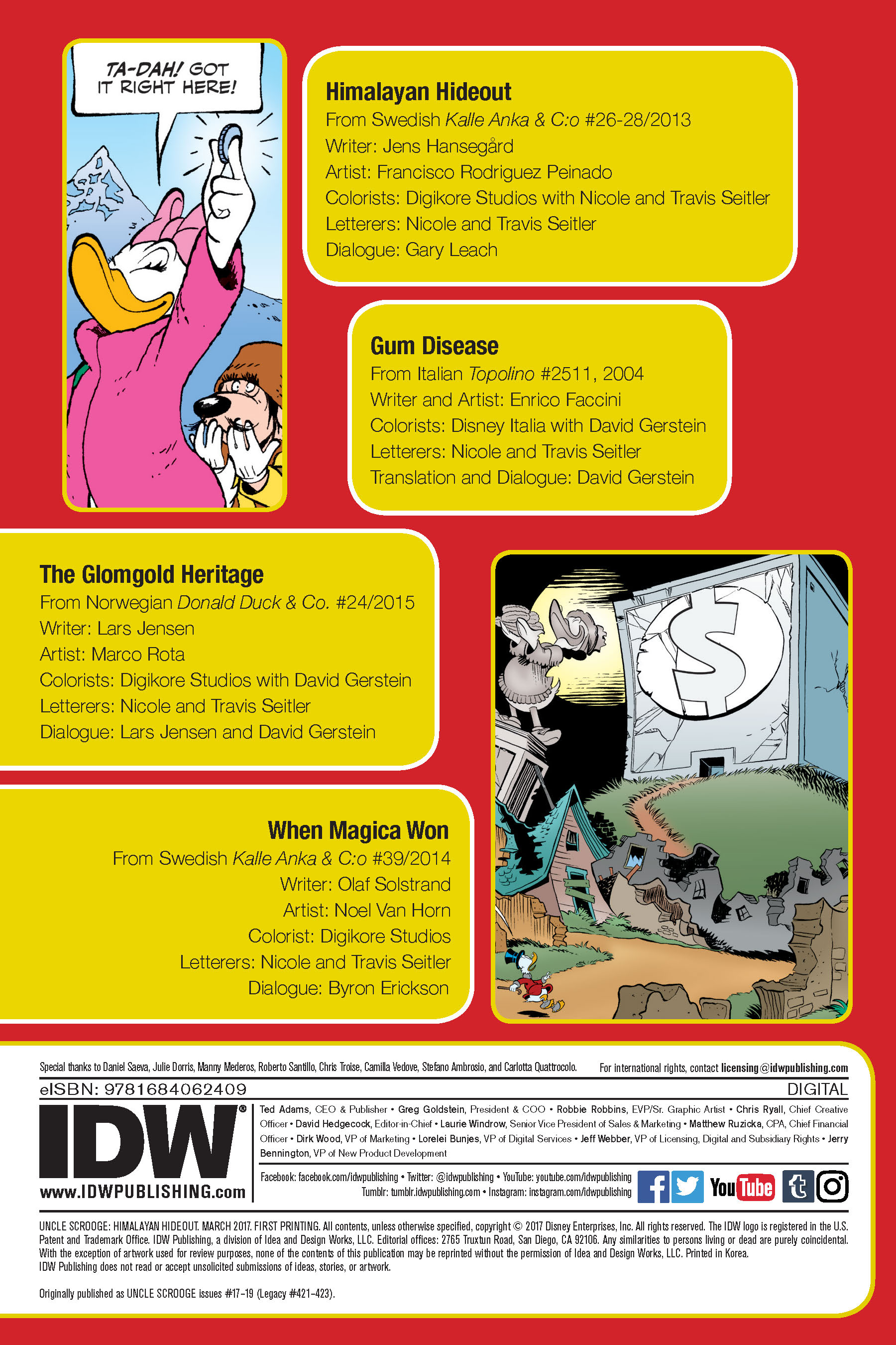 She’s back! Wicked Magica De Spell puts a magic whammy on Scrooge McDuck—teleporting his fortune to an ancient, trap-filled mountain temple and daring him to recover it! Then Scrooge wrangles Glittering Goldie’s rebel relative in “The Miner’s Granddaughter”… and battles his own virtual self in “Scrooge Vs. Scrooge!” Collects IDW’s Uncle Scrooge issues #17-19.