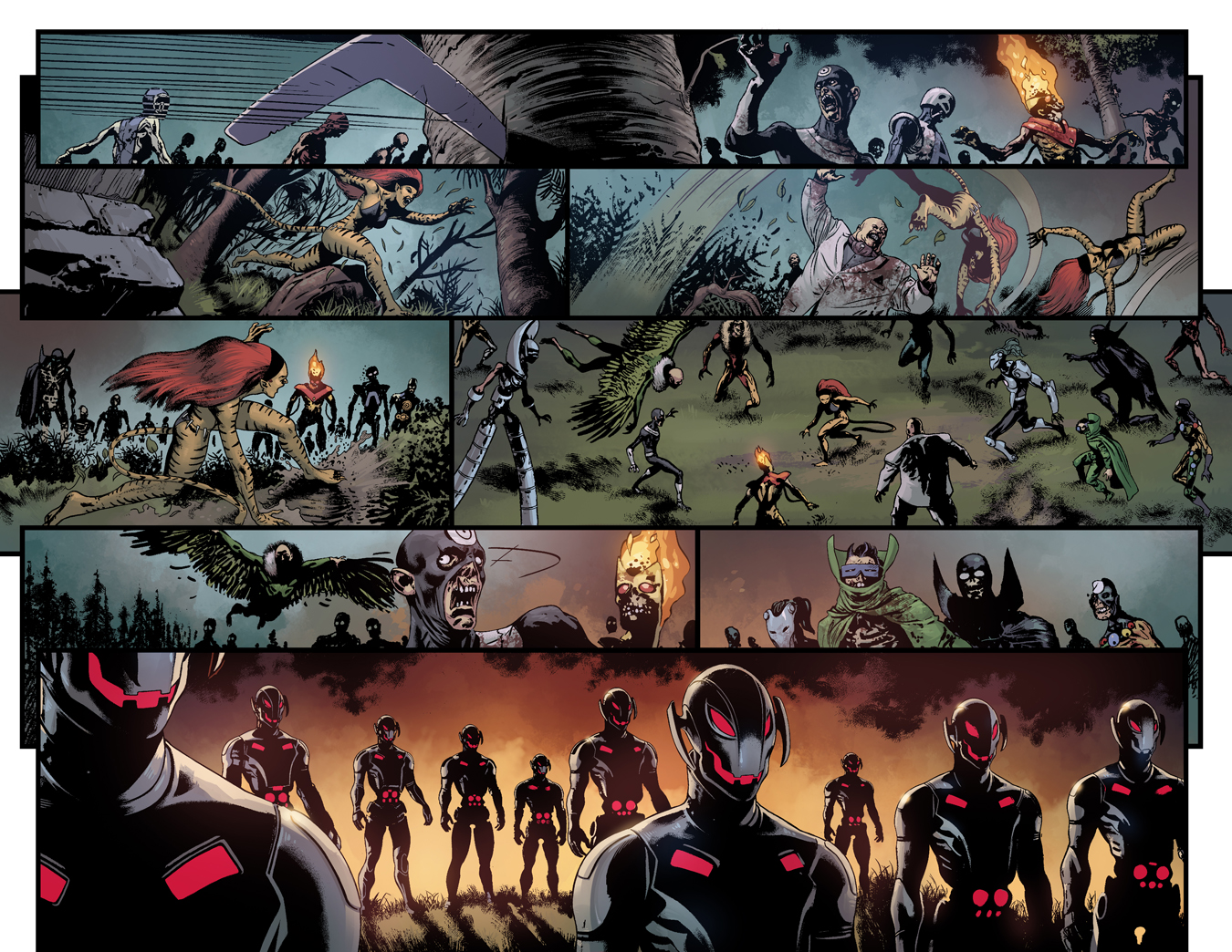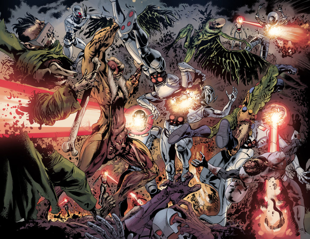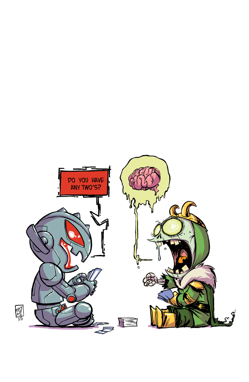 New York, NY—May 26th, 2015— In the southern wastes of Battleworld, a never ending battle rages on. Two unholy factions of cold machines and rotting zombies wage war for supremacy. Today, their conflict reaches another level of horror in your new look AGE OF ULTRON VS. MARVEL ZOMBIES #1! Eisner award winning writer James Robinson and critically acclaimed artist Steve Pugh take you beyond the Shield – and show you a new reason to fear! Here, on the far side of Battleworld’s impenetrable barrier, all hope is lost. These festering wastes on the border between two domains are where the genocidal robotic armies of Ultron fight the endless hordes of flesh-eating corpses. Pity those poor souls trapped between these unstoppable forces, for their demise is definitely assured! Will you choose death by the super powered living dead? Or by an unending army of indestructible, undefeatable robots? One thing is for certain, neither demise will be quick or painless!