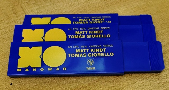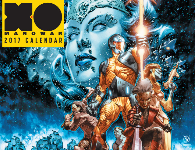To date, Valiant has released a formidable battery of in-store X-O MANOWAR promotional items for retailers, including posters, six-foot standees, section signs, calendars, box cutters, and more. Look for Valiant’s POP program in support of X-O MANOWAR (2017) #1 to continue on an ongoing basis with a special sell-through package including window clings, promotional pens, and more.