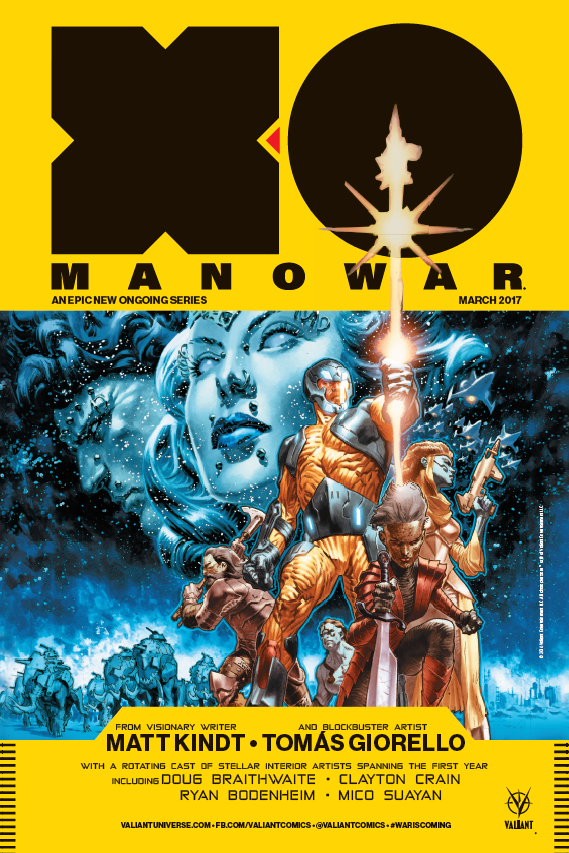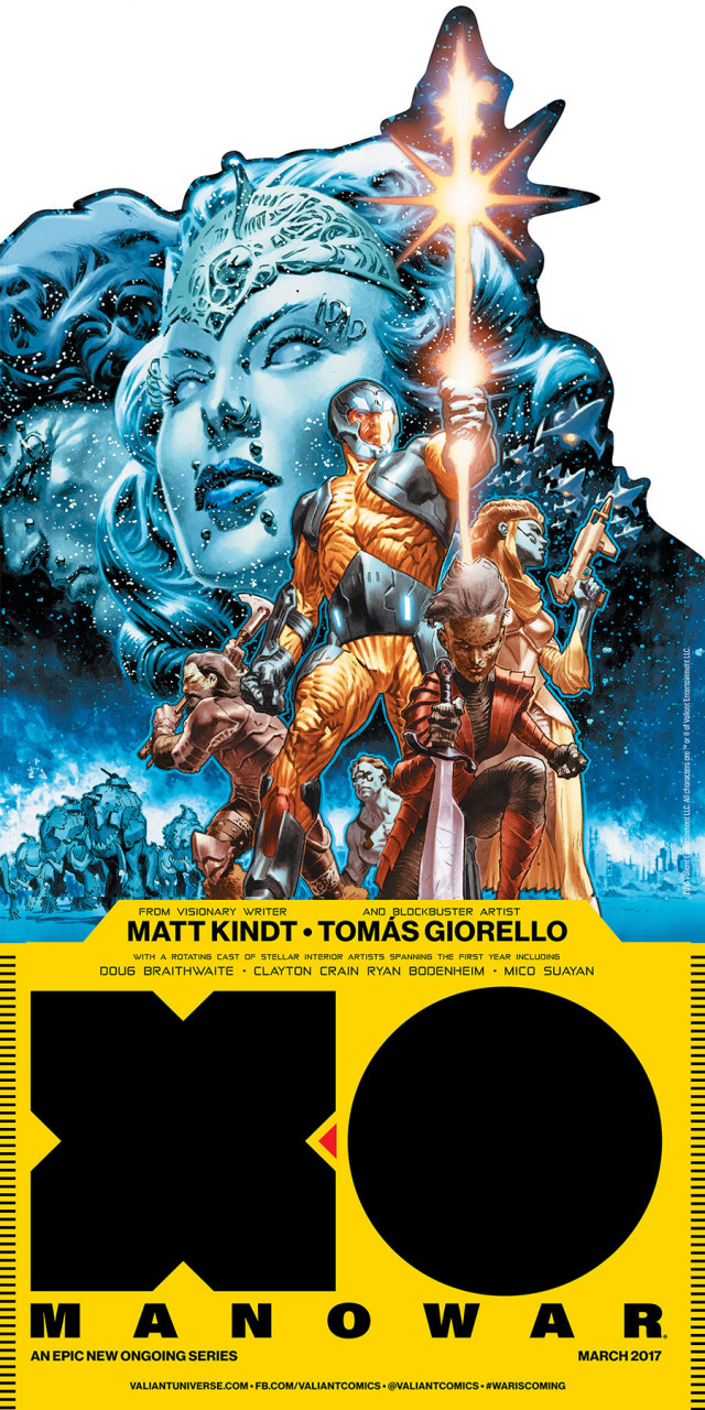 As X-O MANOWAR (2017) #1 – the FIRST ISSUE of the EPIC ONGOING SERIES from New York Times best-selling writer Matt Kindt (Divinity, Mind MGMT) and Valiant-exclusive rising star Tomas Giorello (Bloodshot Reborn, Batman & Robin) – thunders its way into comic shops everywhere on March 22nd for a star-shattering crusade through the galaxy, Valiant is gearing up for a series of promotional initiatives as mighty as the unstoppable X-O Manowar himself with offerings that include: